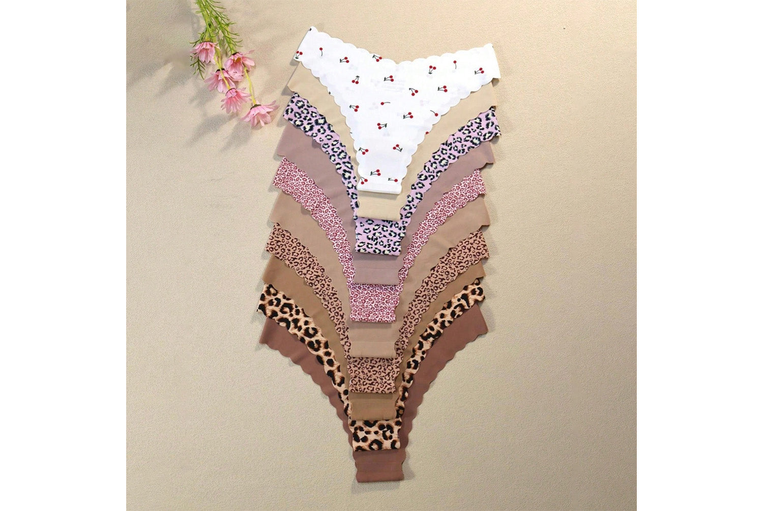 **10-Pack Women's Seamless Printed Triangle Panties (Wavy Hem Design)**