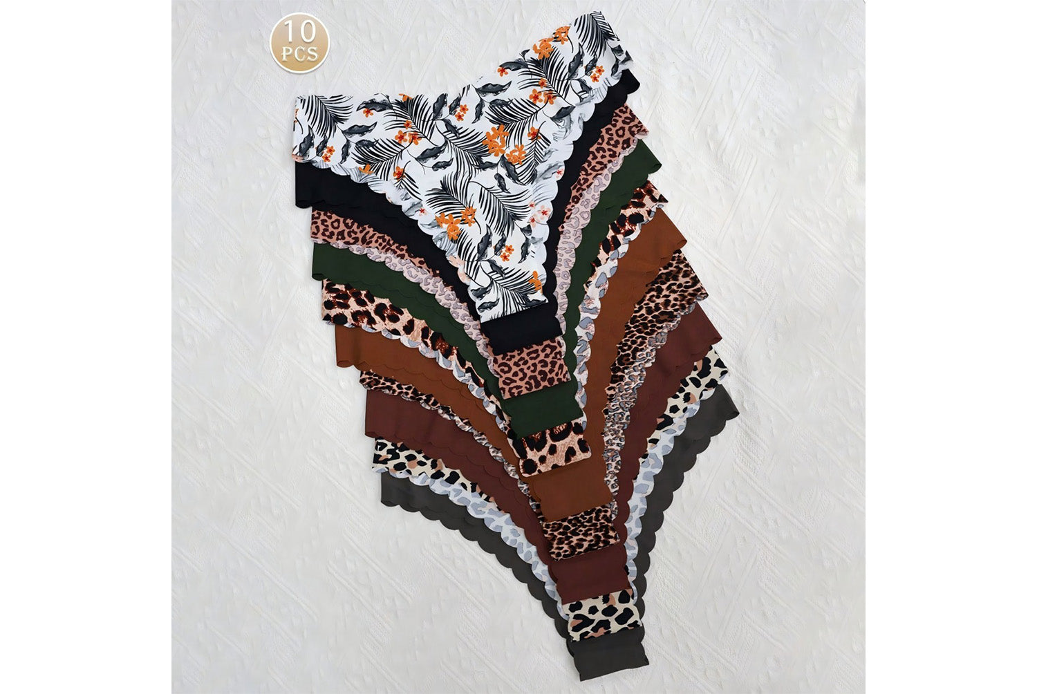 **10-Pack Women's Seamless Printed Triangle Panties (Wavy Hem Design)**