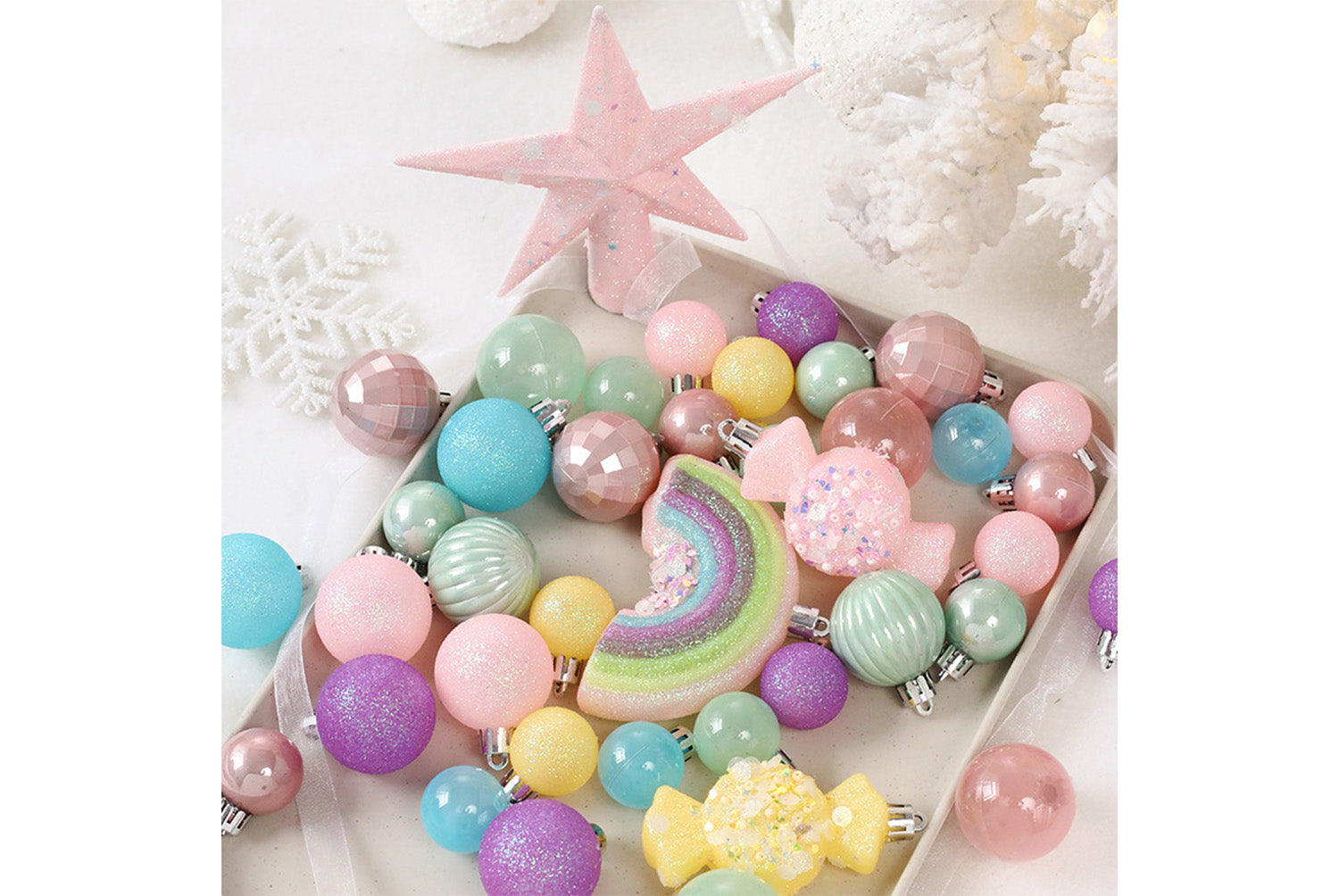 **40 Macaron-Colored Christmas Ball Set - Christmas Tree Ornaments**