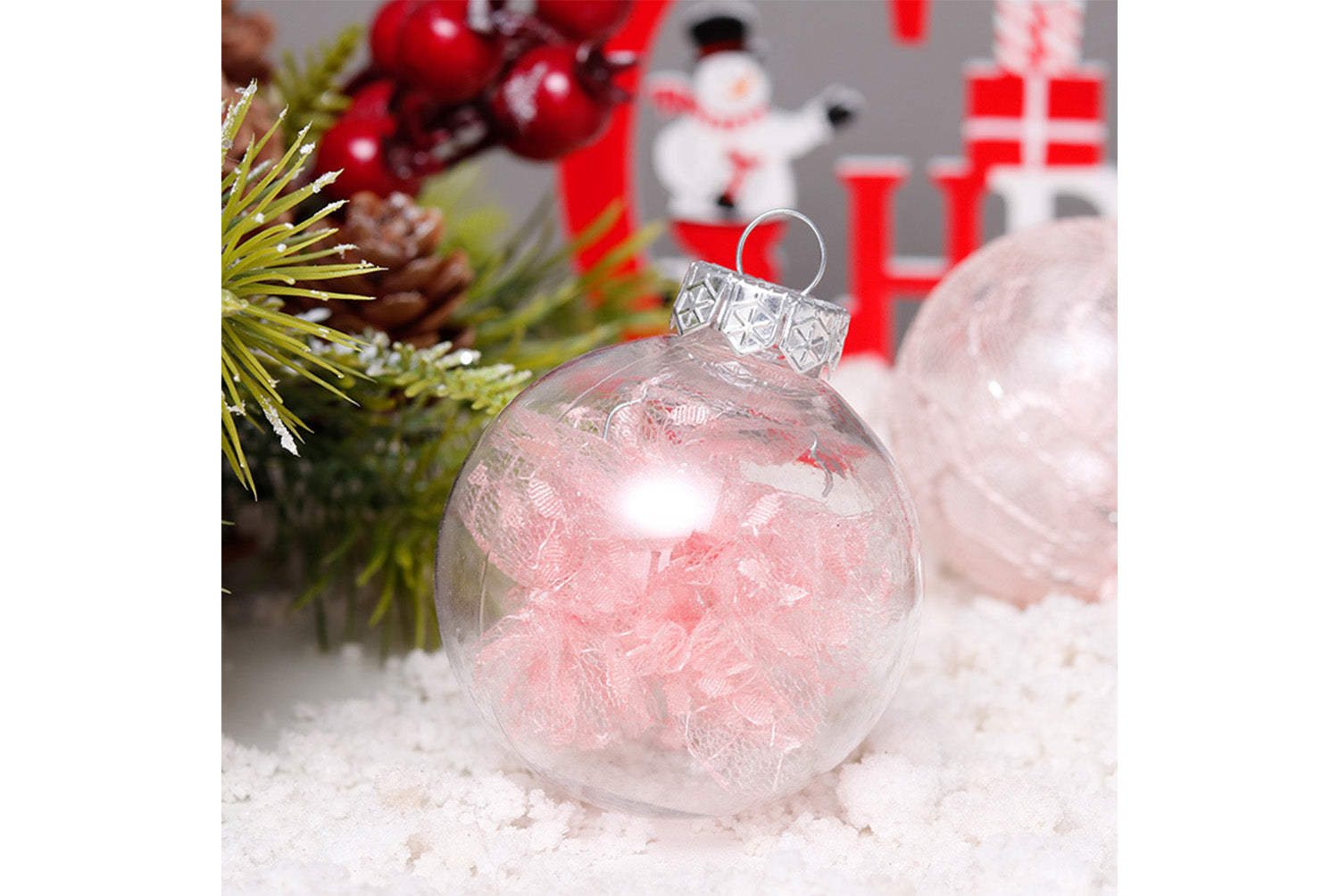 6cm Pink PET Transparent Christmas Ball Set