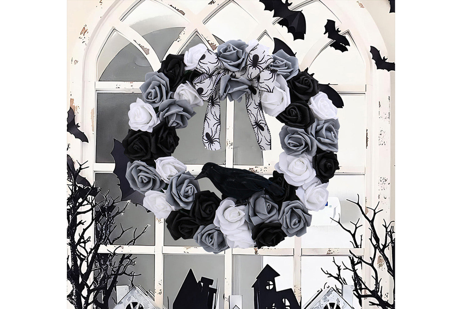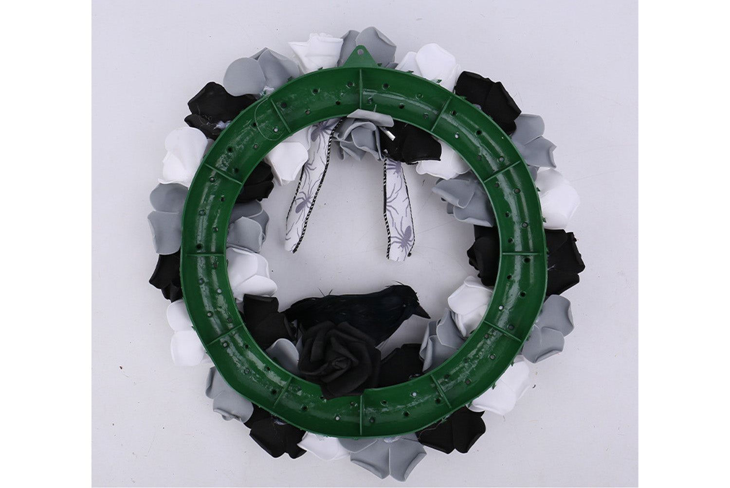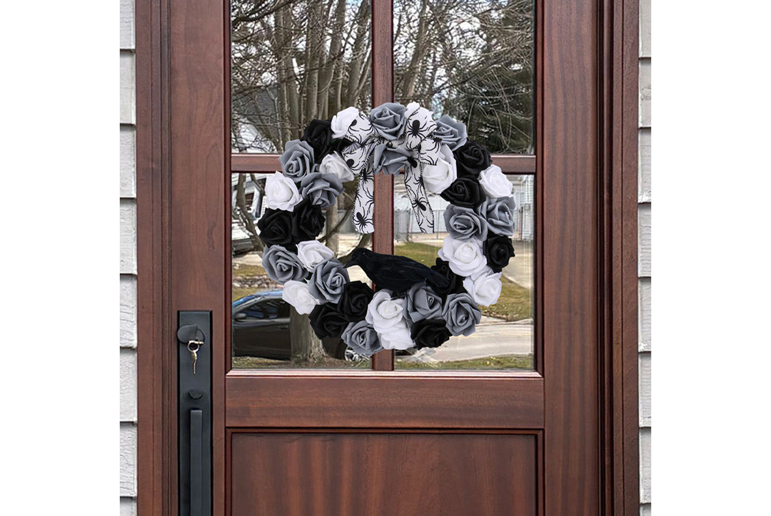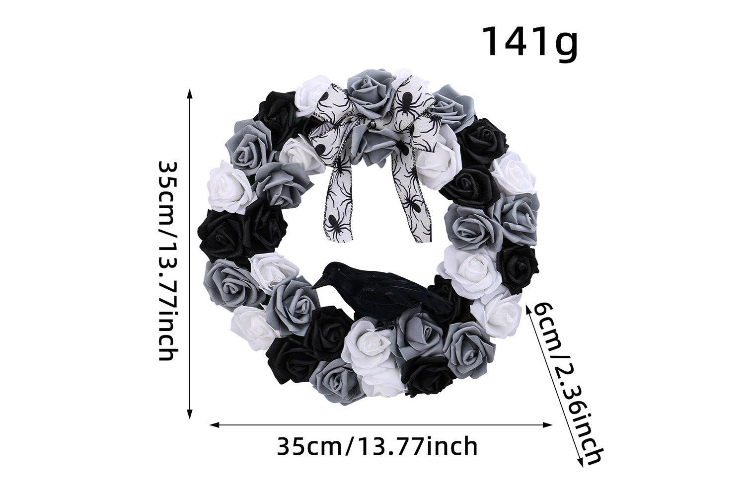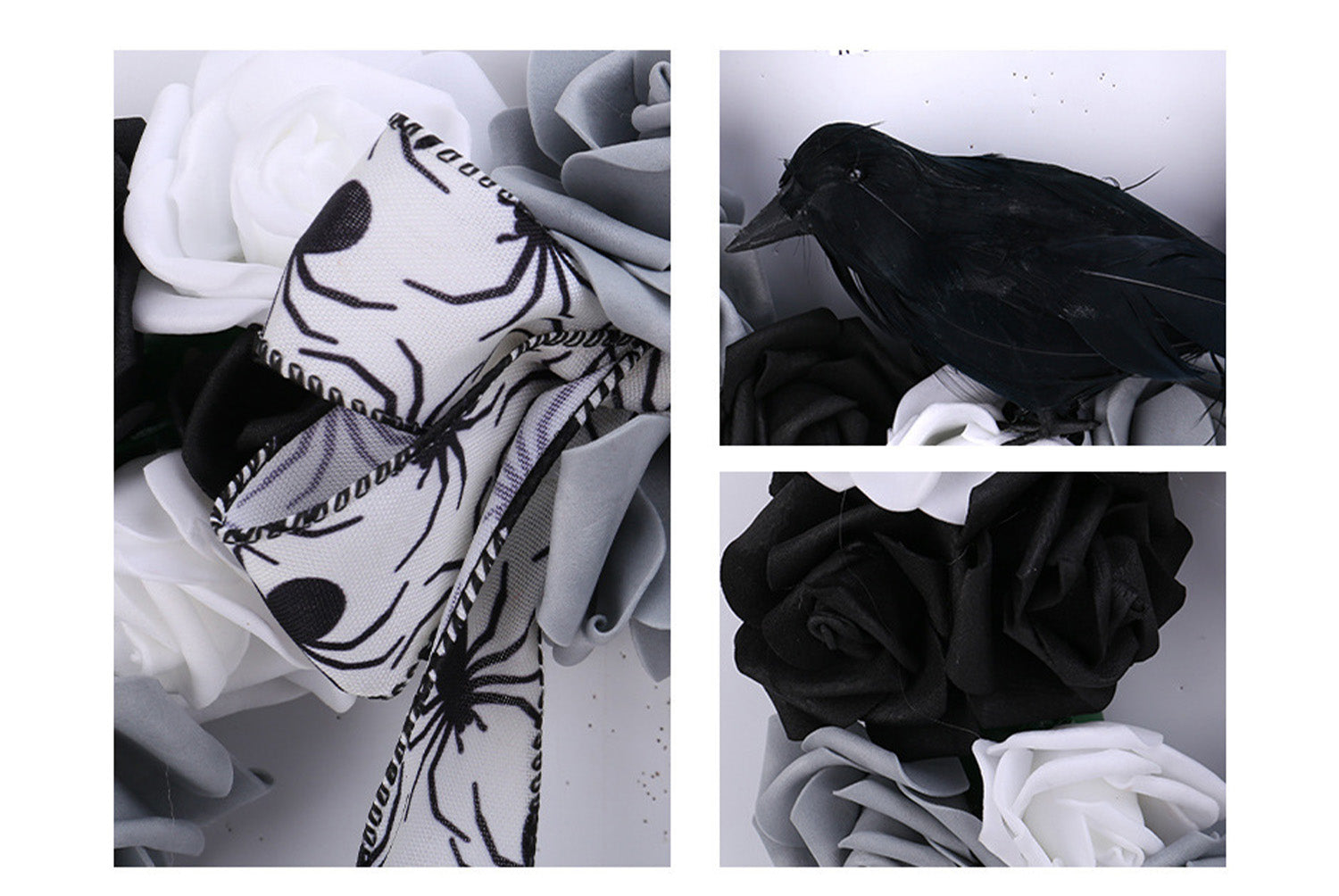 **Black and White Rose and Crow Wreath | Halloween Horror Decorations | Halloween Party Door Hanging Props**