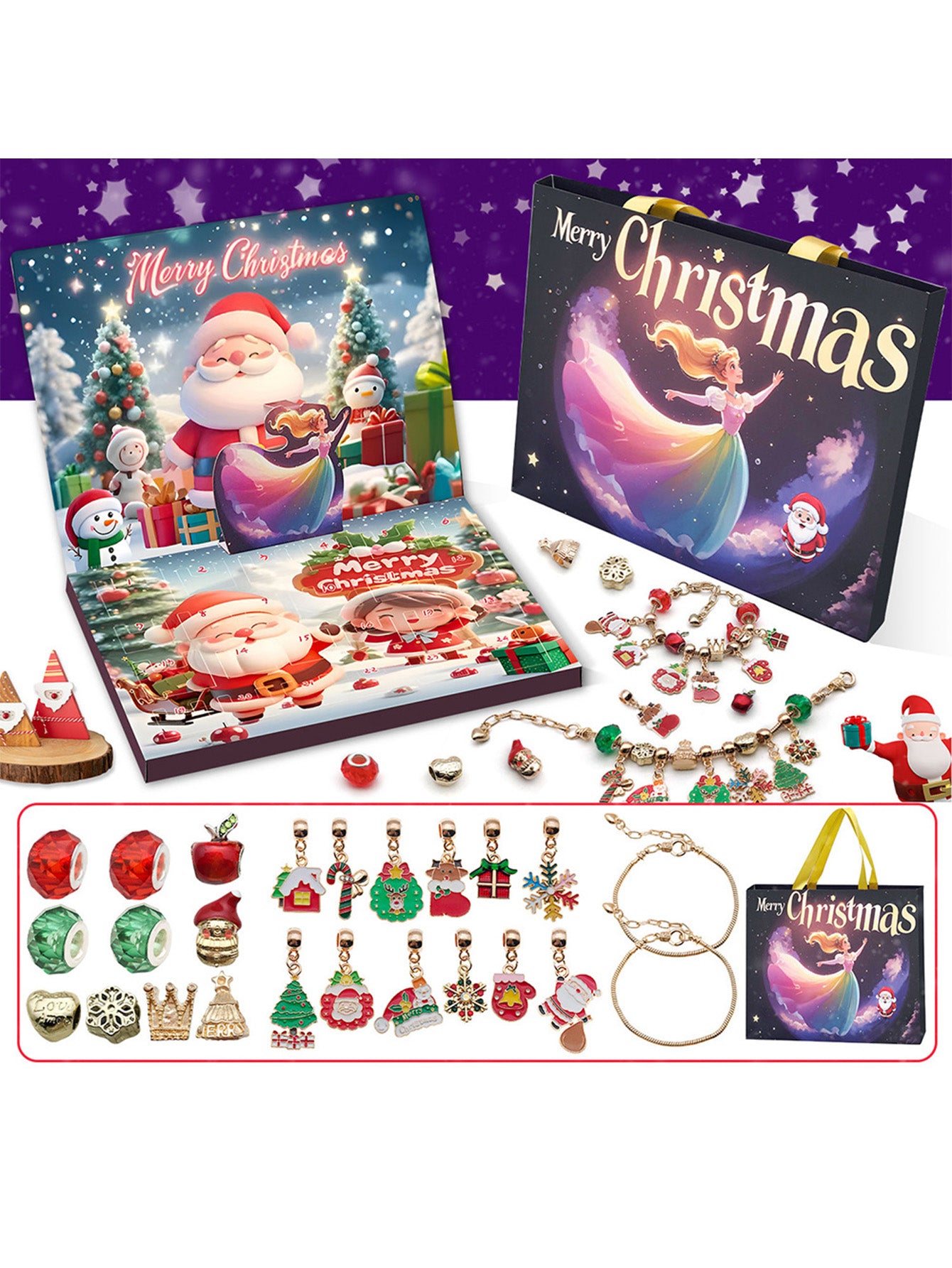 1. **Creative Handmade Set**: Contains 24-grid Christmas theme puzzle blind box, stimulates children's hands-on ability and imagination, and can freely match beads to design exclusive bracelets.