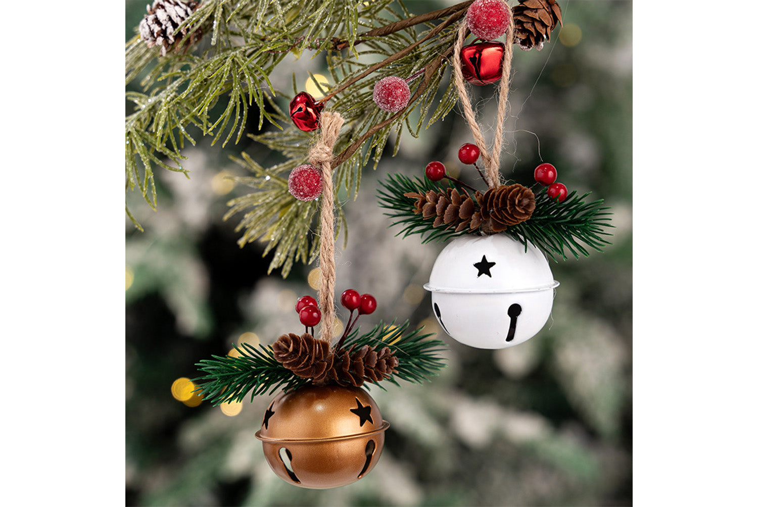 Simulated pine cone single bell pendant green, simulated pine cone single bell pendant red, simulated pine cone single bell pendant gold, simulated pine cone single bell pendant white