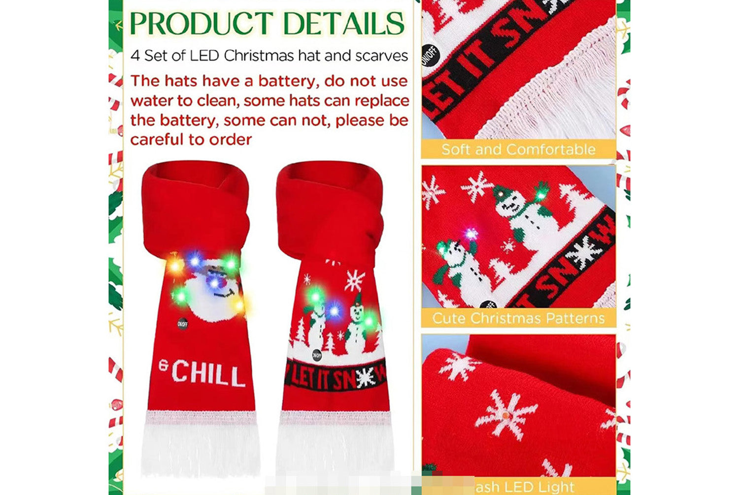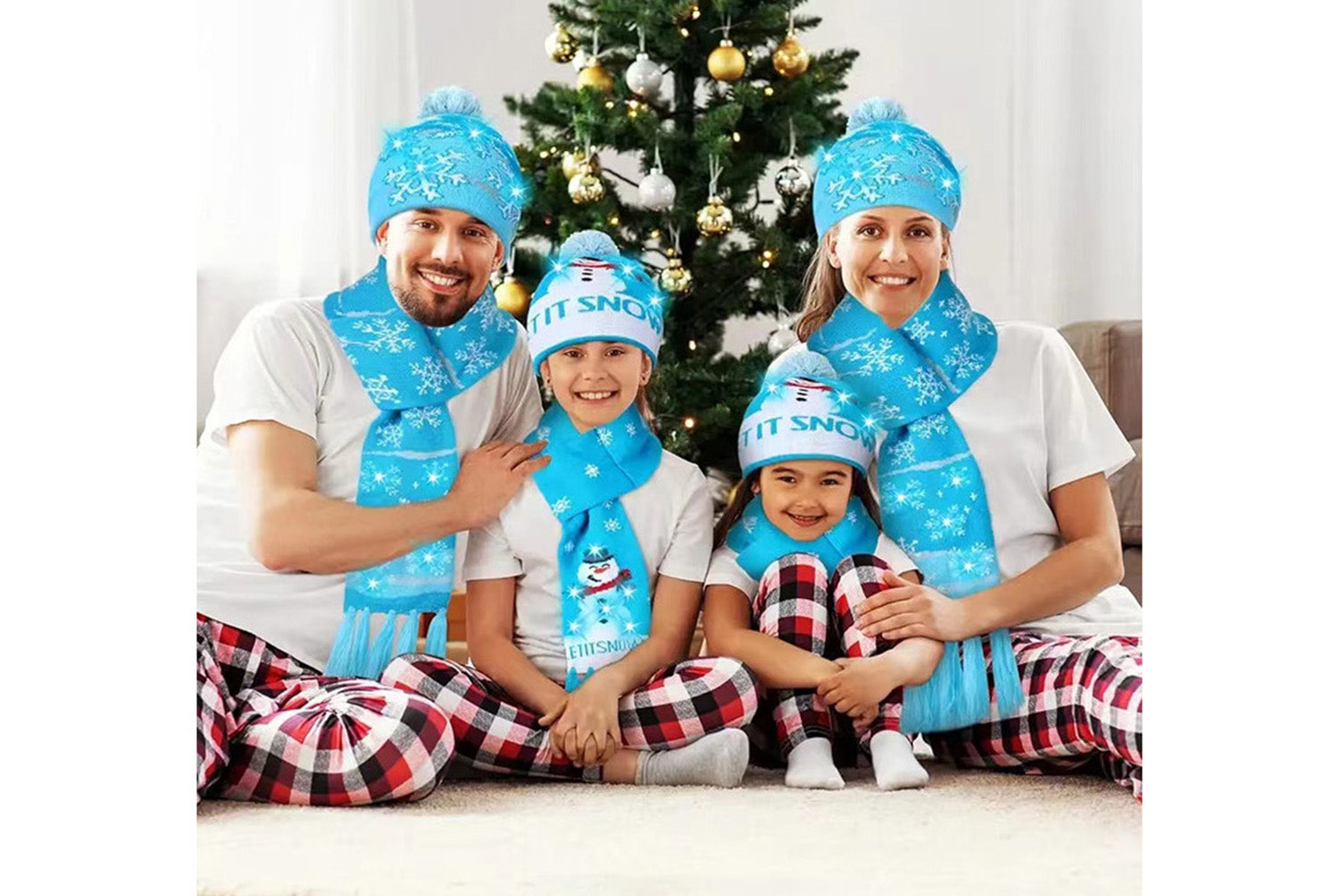 **Christmas LED Jacquard Hat and Scarf Set (Unisex for Adults and Children)**