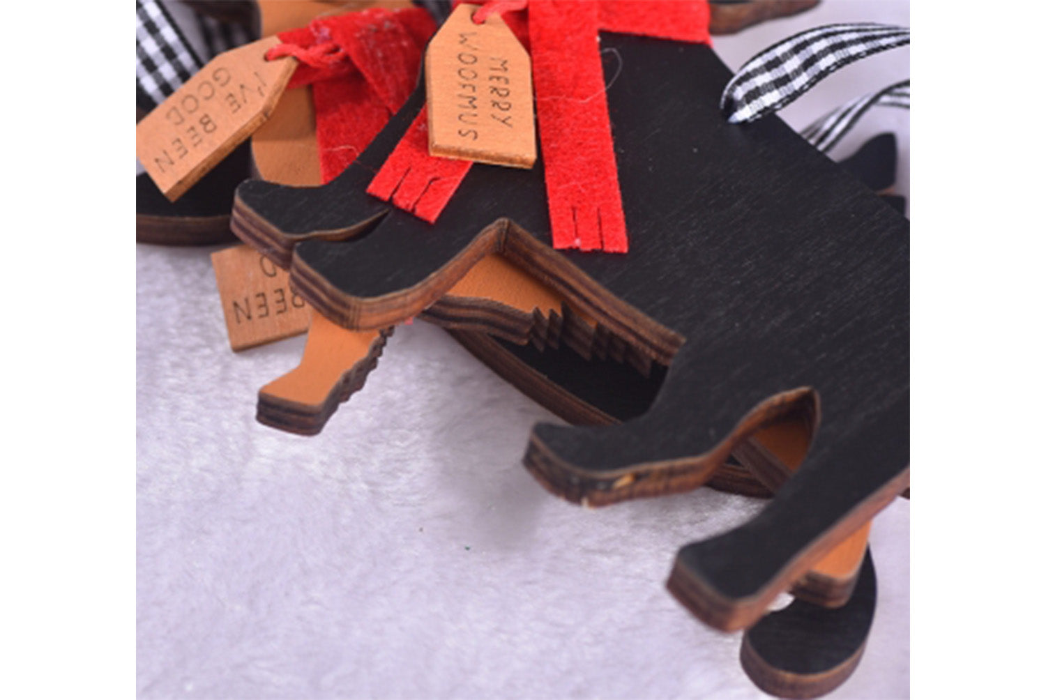 **Christmas Wooden Scarf Puppy Pendant - Holiday Tree Ornaments**