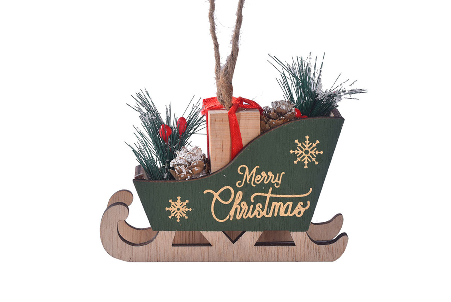**Christmas Wooden Sleigh Ornament - Festive Decoration**