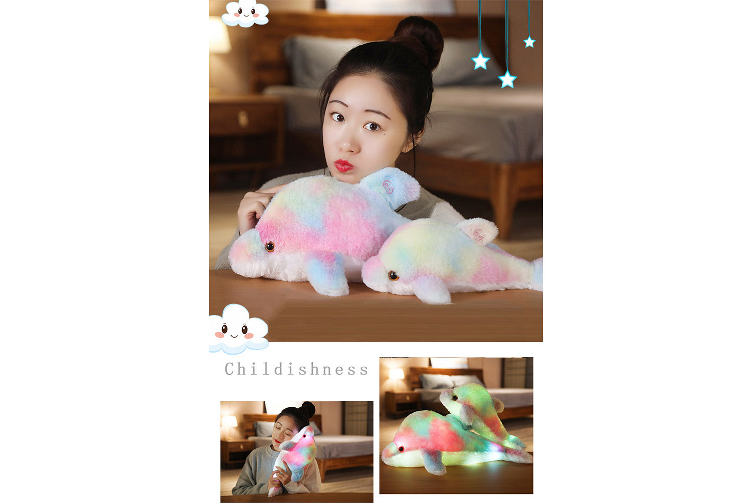 - Name: Colorful Glowing Dolphin Plush Toy