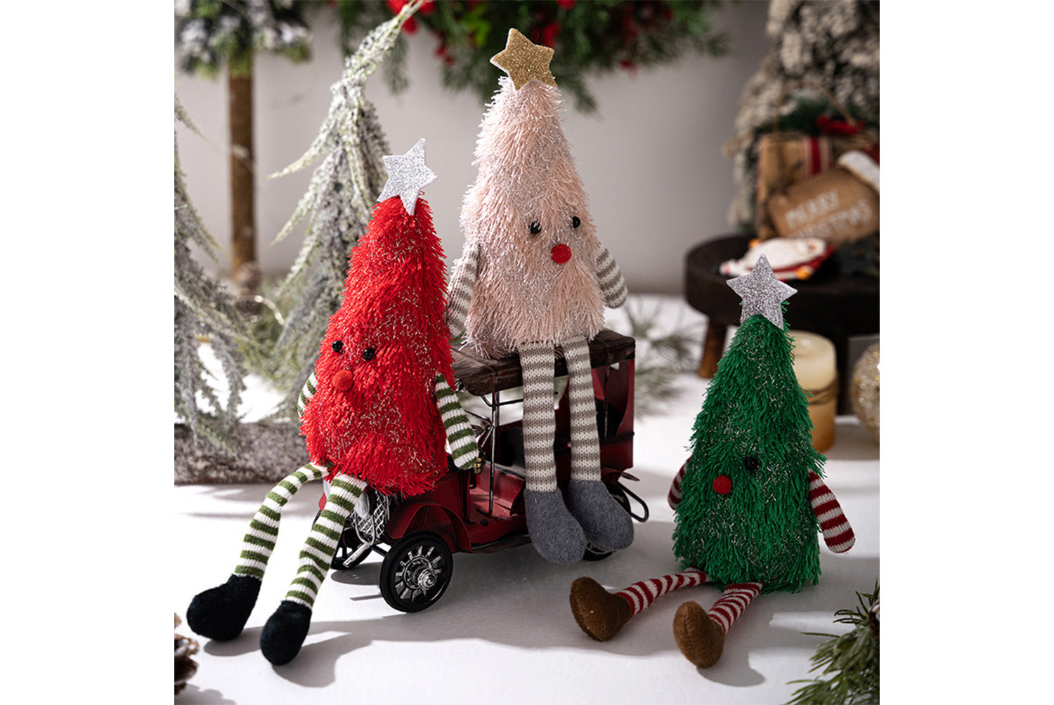 Christmas tree-shaped hanging leg doll green, Christmas tree-shaped hanging leg doll red, Christmas tree-shaped hanging leg doll pink, Christmas tree-shaped hanging leg doll white