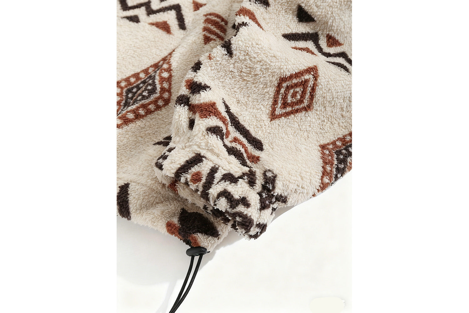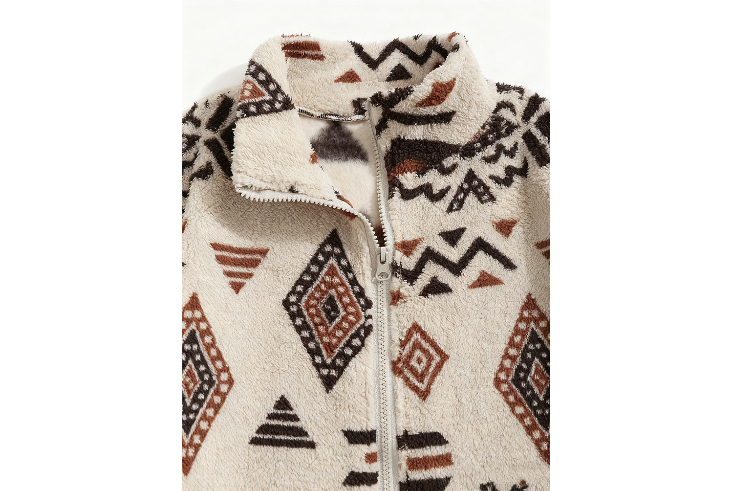 **Ethnic Print Fleece Women's Jacket (Elegant Hoodless Zipper Style)**