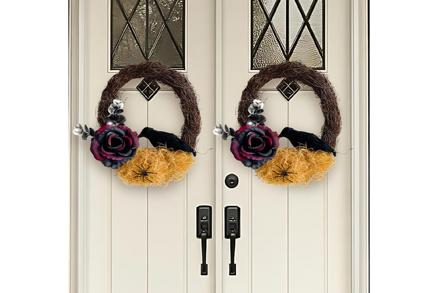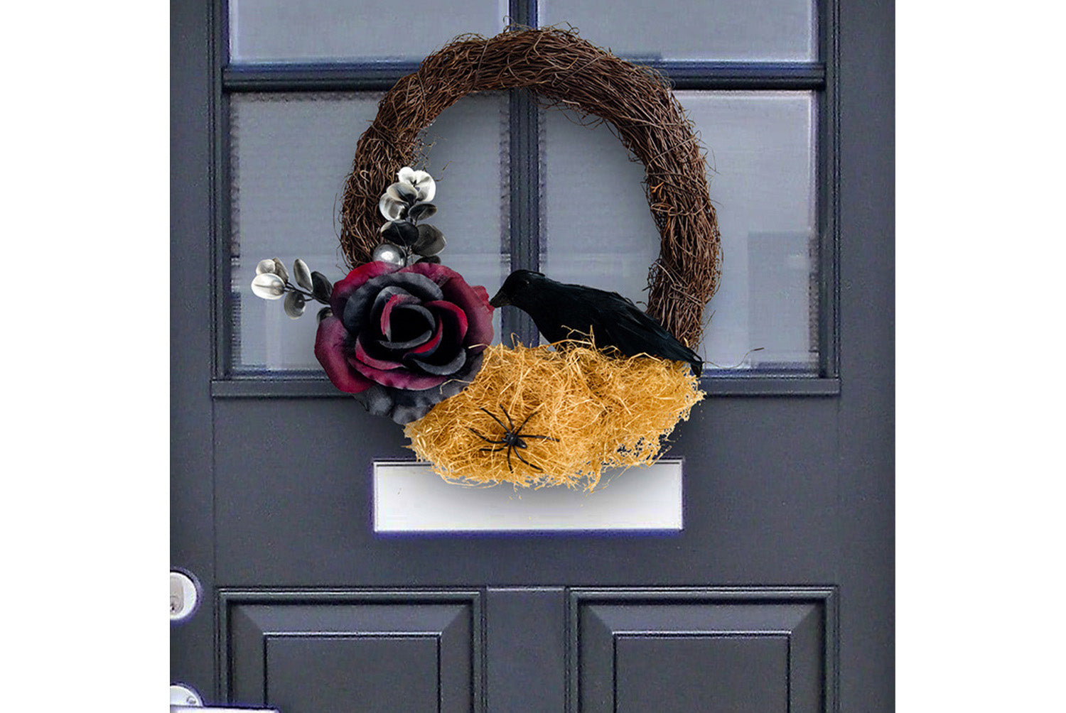 Halloween Dead Rose and Crow Wreath | Horror-Themed Door Decoration