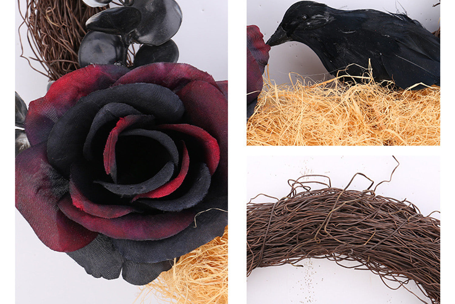**Halloween Dead Rose and Crow Wreath | Horror-Themed Door Decoration | Multi-Material Composite Craft**