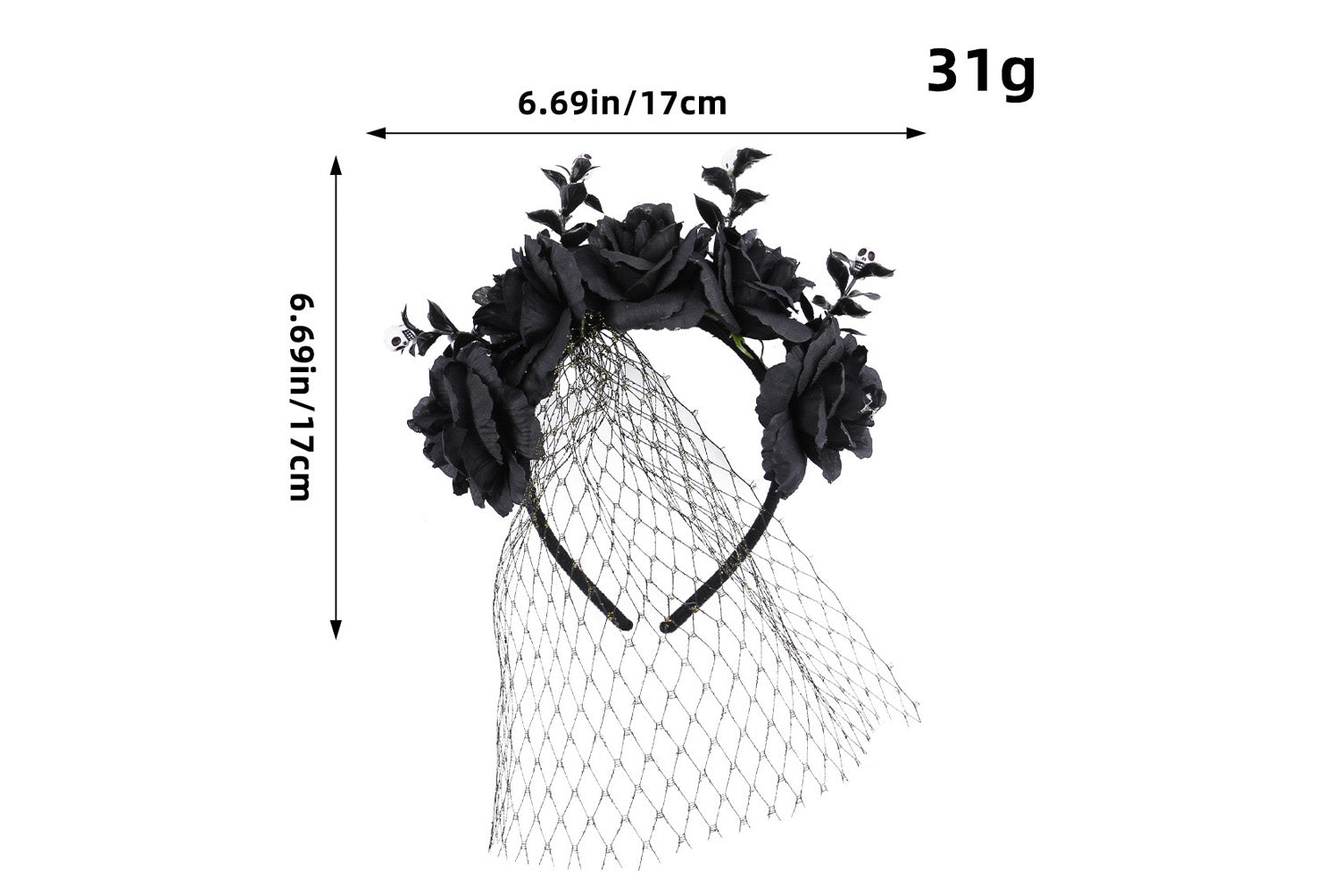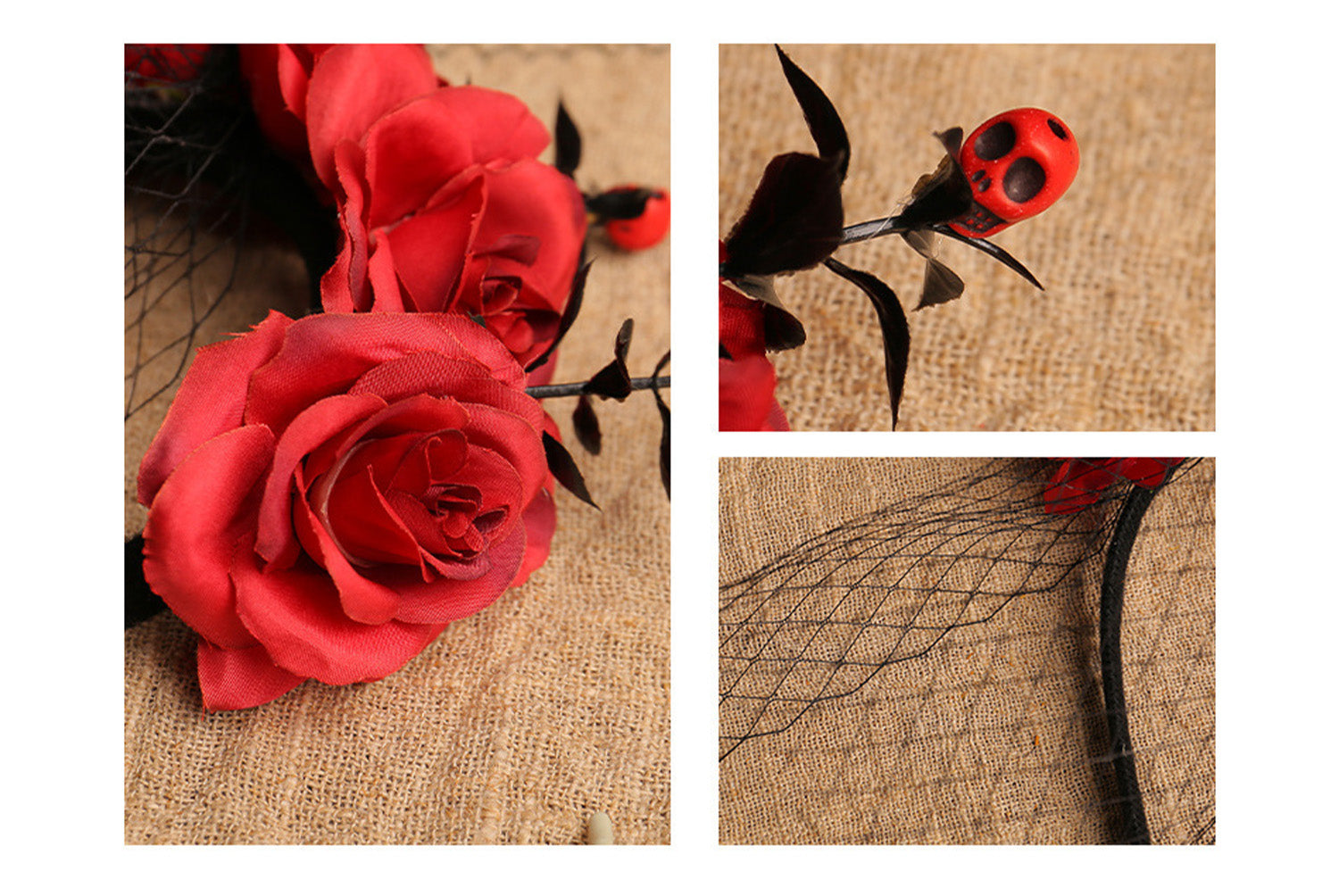 **Halloween Mesh Rose Headband | Dark Style Headdress | Halloween Party and Performance Hair Accessory**
