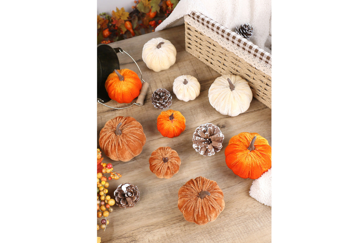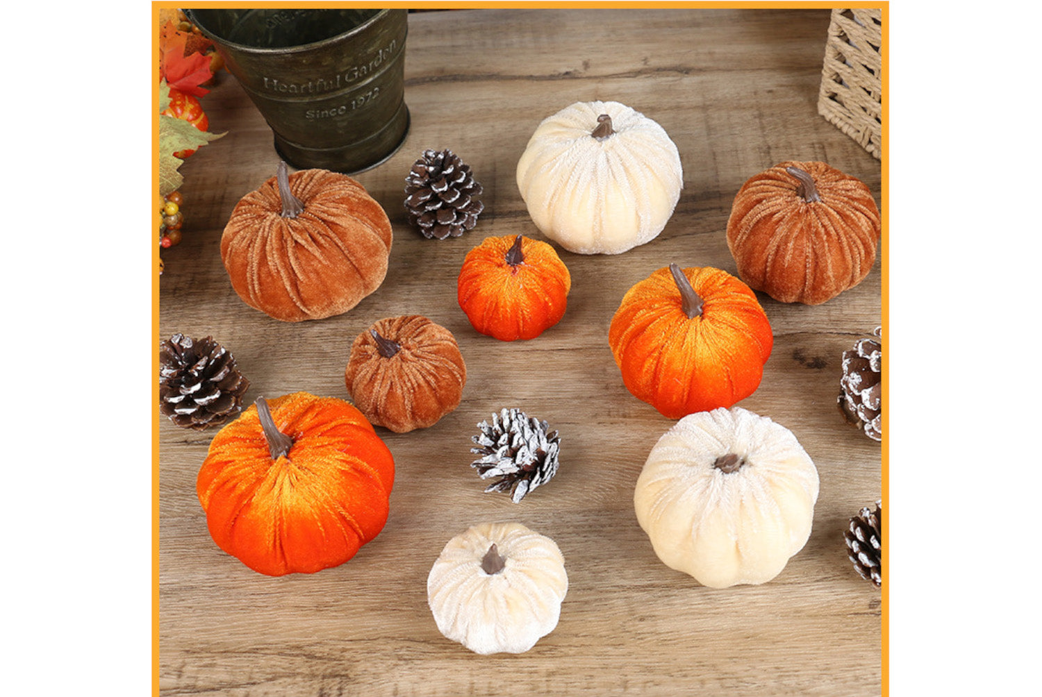 1. **Product Highlights**: Made of premium velvet for a soft touch, the realistic pumpkin shape effortlessly creates a Halloween atmosphere.