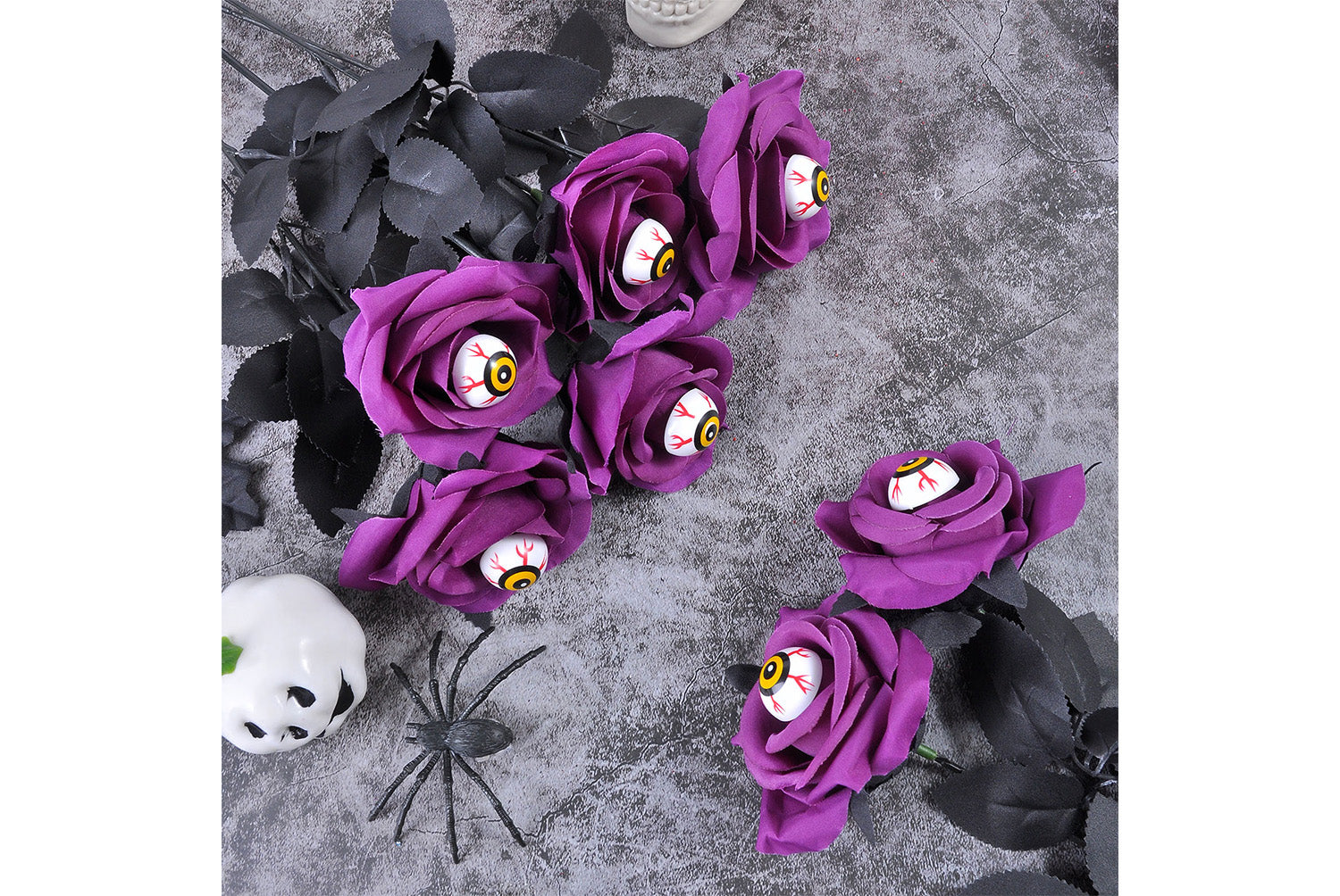 **Halloween Scary Rose Decorations (10-Pack) | Bouquet with Eyeballs/Skulls/Spiders | Party Home Decor**