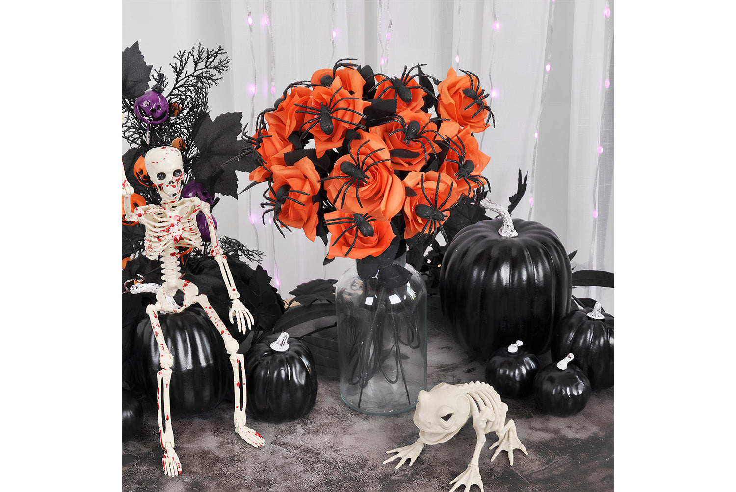 **Halloween Skull Spider Roses (10-Pack) | Horror-Themed Silk Flower Decorations | Holiday Party Props**