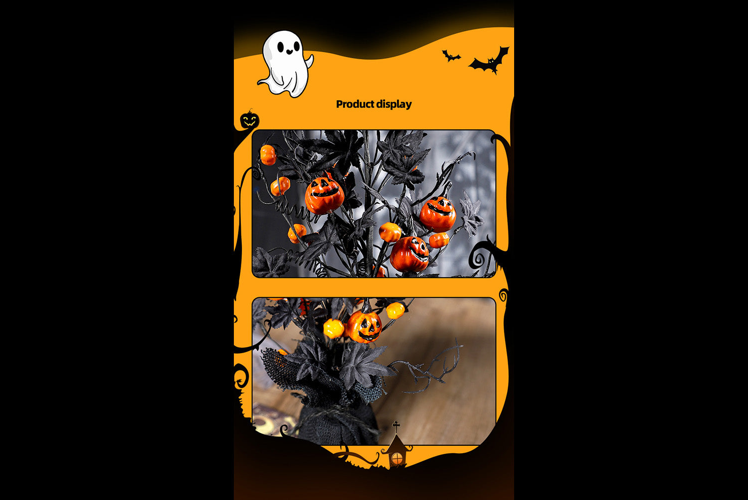 **Halloween Spooky Pumpkin Maple Leaf Decorative Tree, Home Party Decoration**