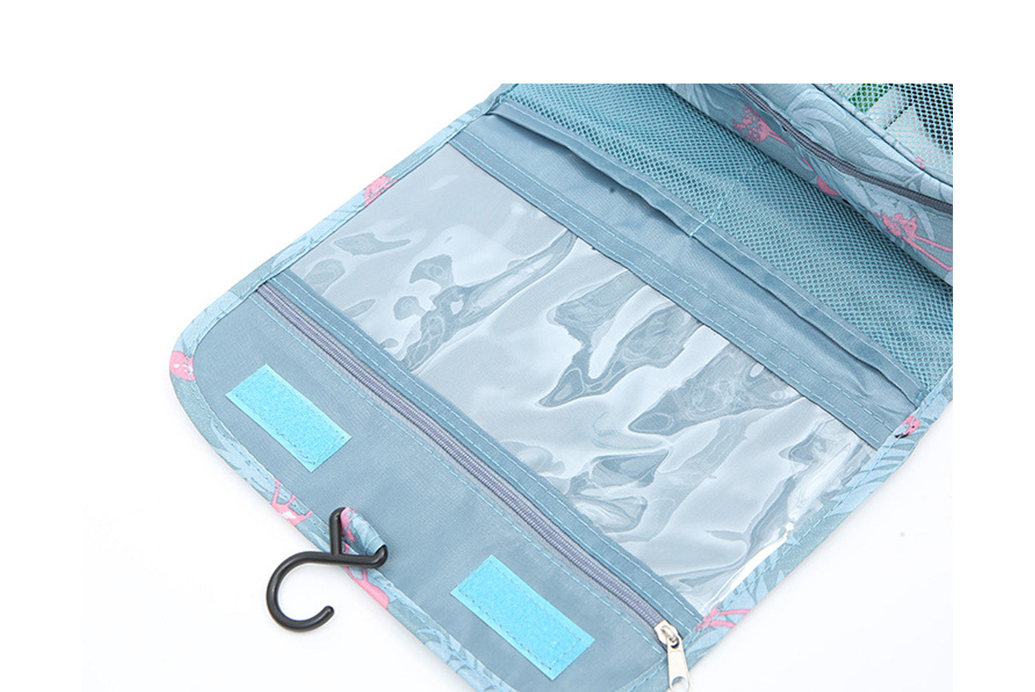This hanging toiletry storage bag is designed for business trips and travels. It is light and practical, and can easily organize personal items.