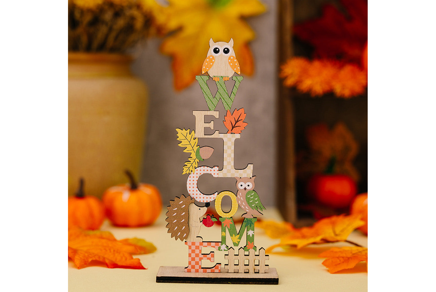 1. **Classic Design**: Harvest Season wooden vertical letter ornaments feature Thanksgiving elements like owls and squirrels. Available in three styles: A, B, and C. Hand-carved with exquisite details, they evoke a warm holiday atmosphere.
