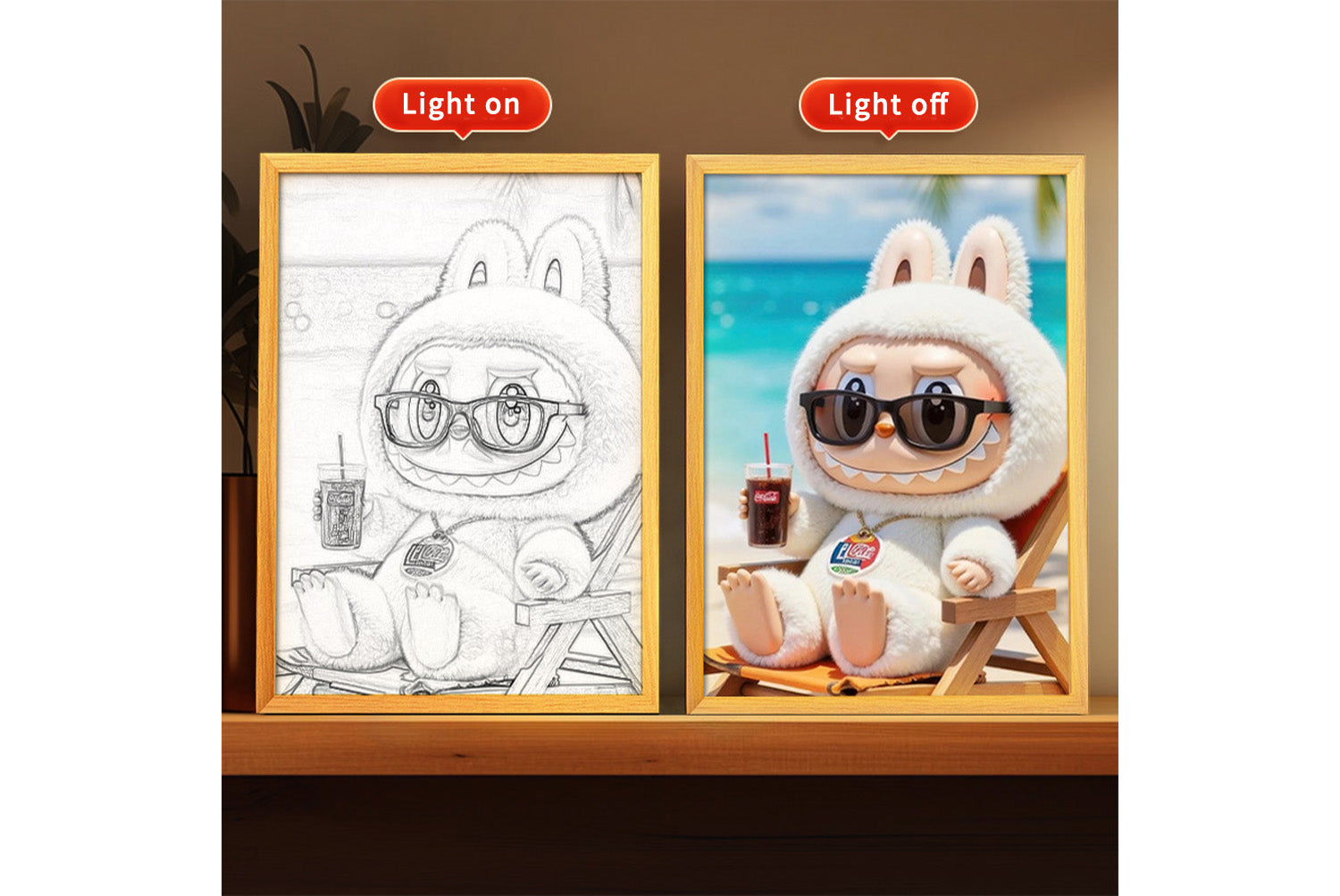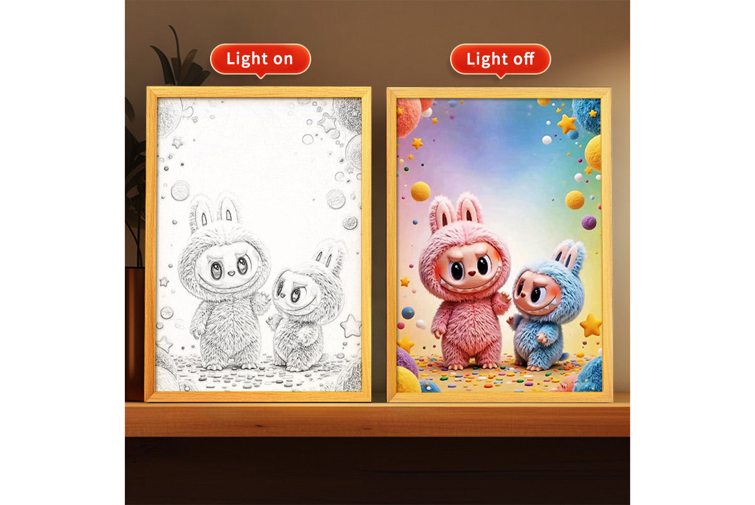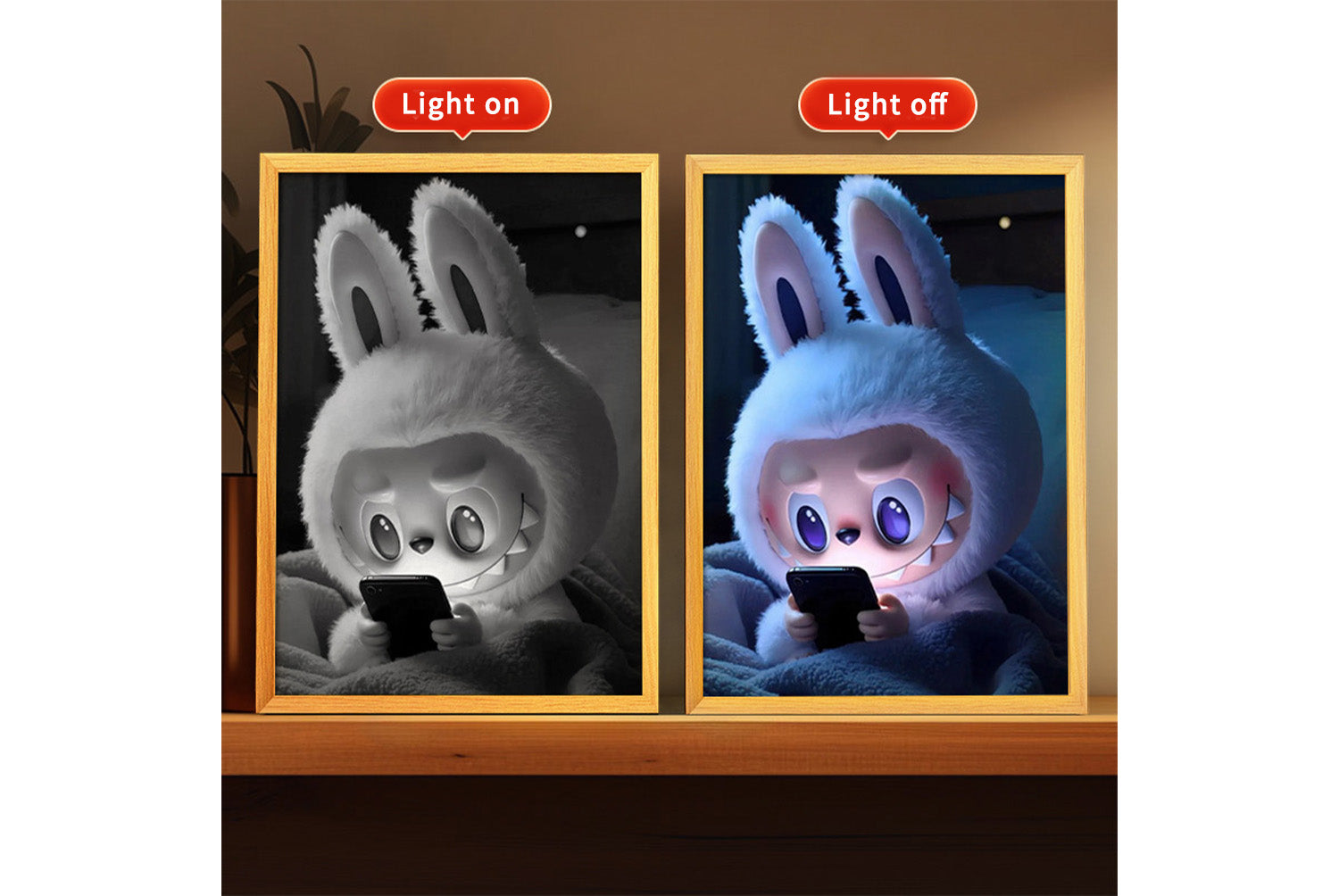 **Labubu Cartoon Light Painting | UV Printed Decorative Painting | Luminous Photo Frame Ornament**