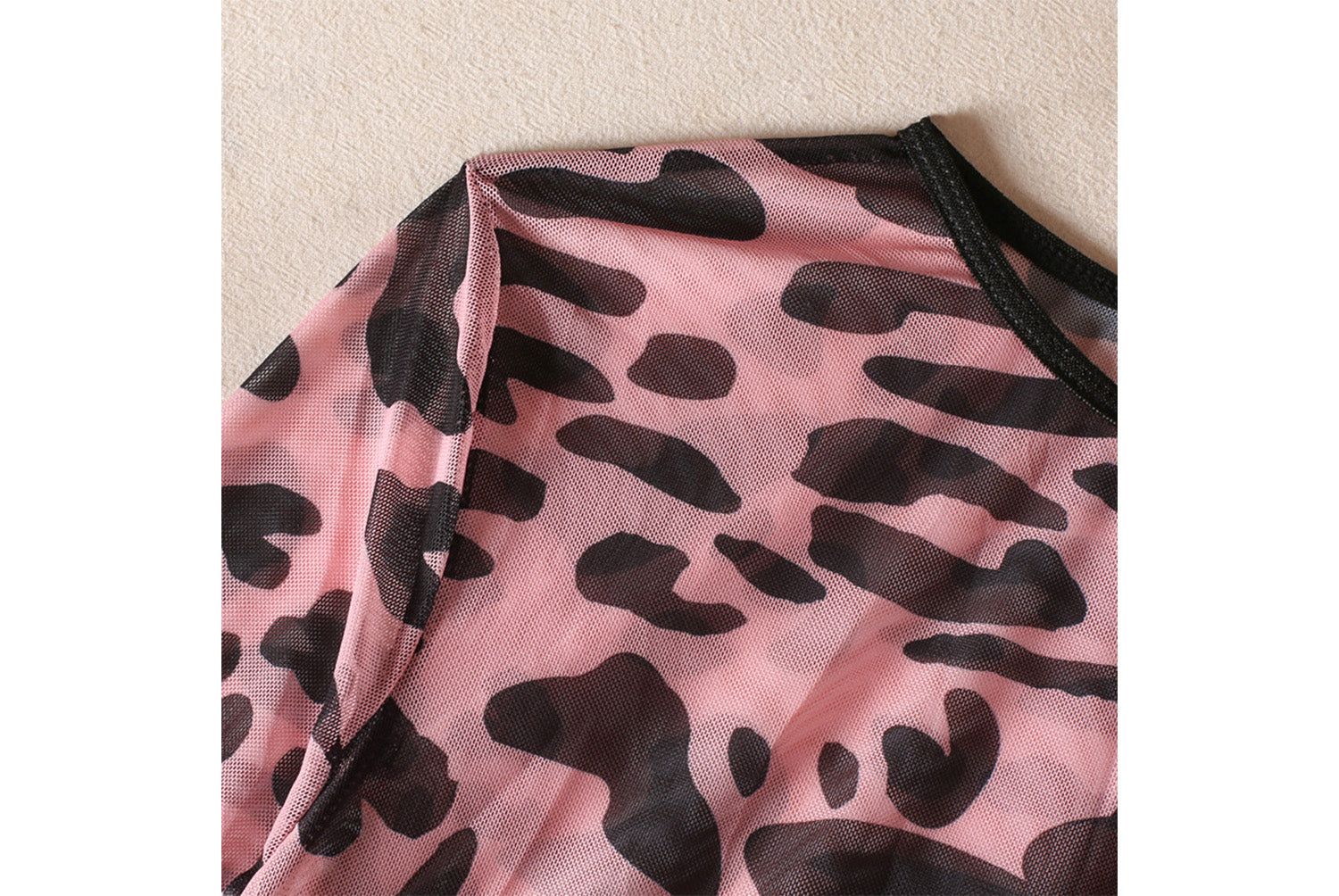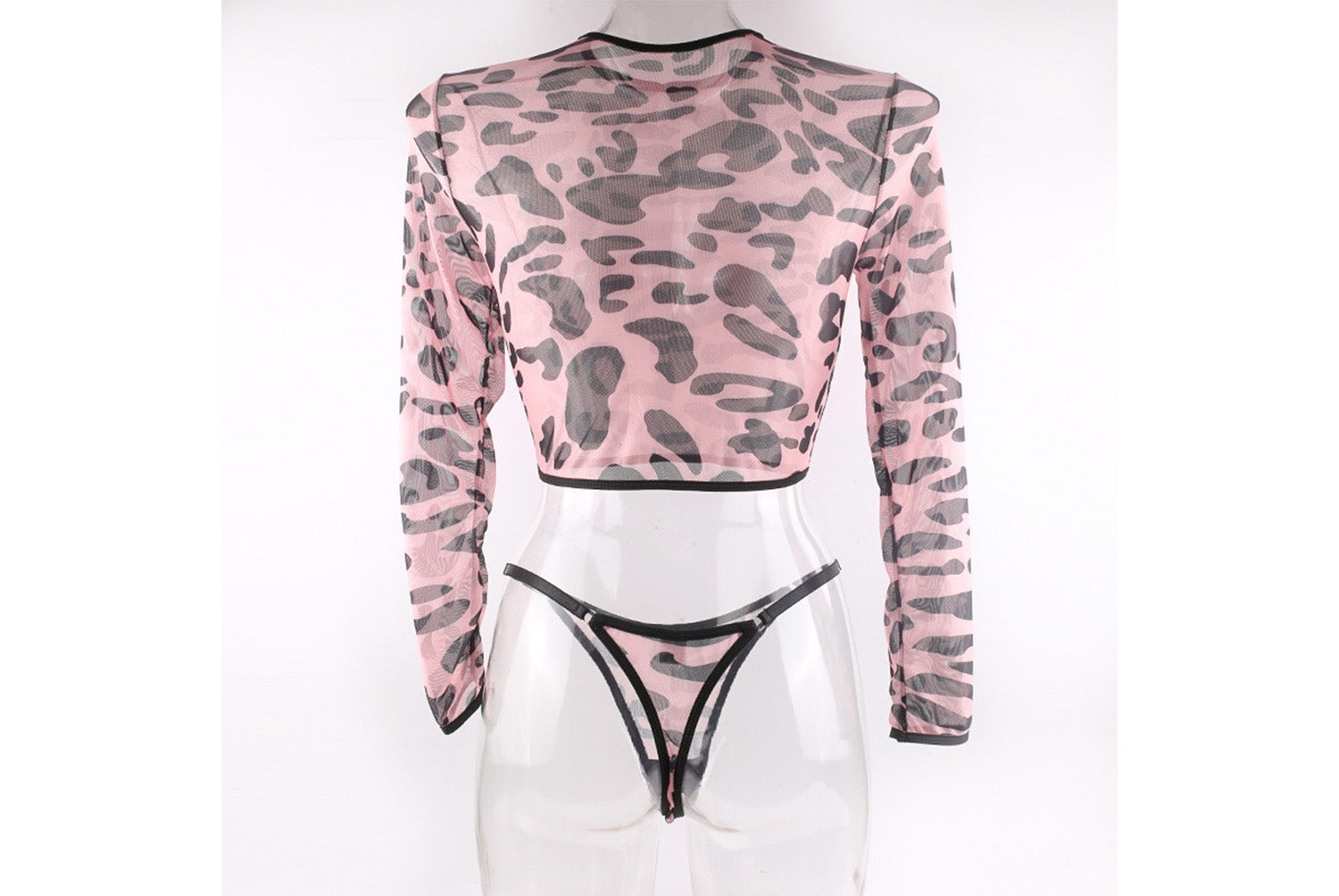 **Leopard Print Seamless Breathable Long-Sleeved Sexy Lingerie Set**