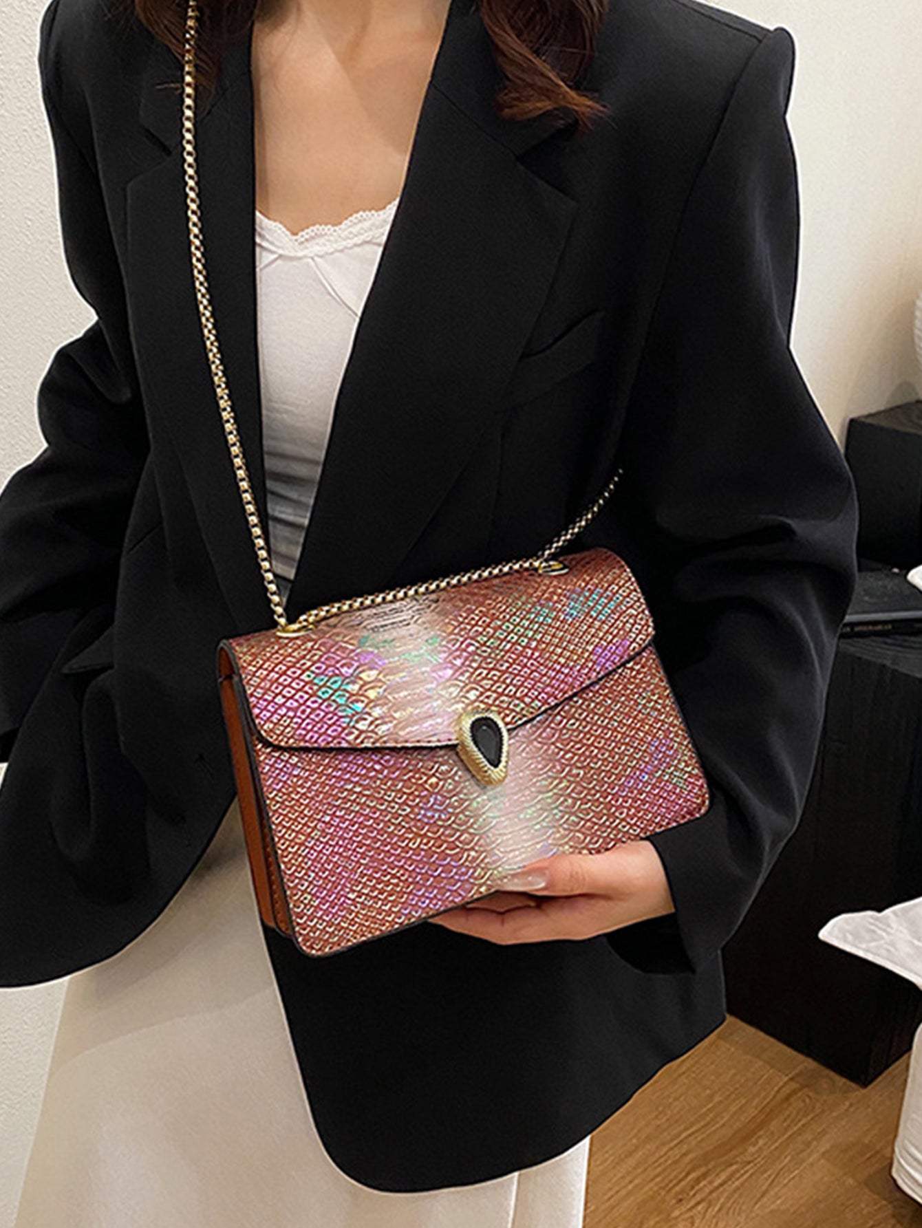 **Snake pattern diamond-studded light luxury retro chain small square bag¡ª¡ªCommuter all-match choice**