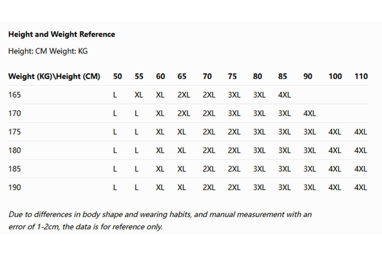 L, XL, XXL, XXXL