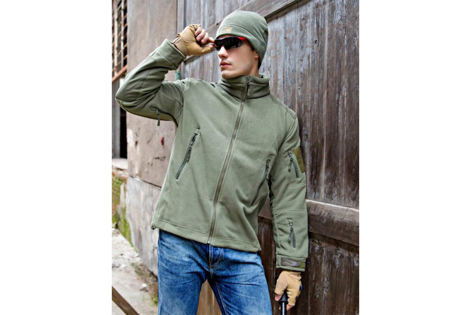 Men's Outdoor Insulated Fleece Jacket with Stand Collar