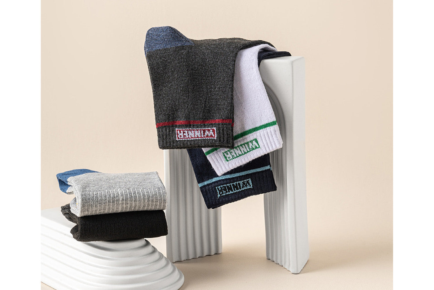 **Men's Solid Color Letter Mid-Calf Sports Socks (Sweat-wicking and Breathable)**