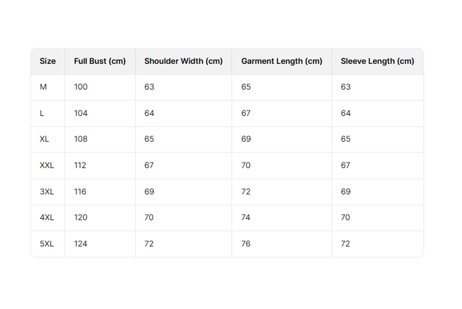 - Available in 7 sizes: M, L, XL, XXL, XXXL, 4XL, 5XL