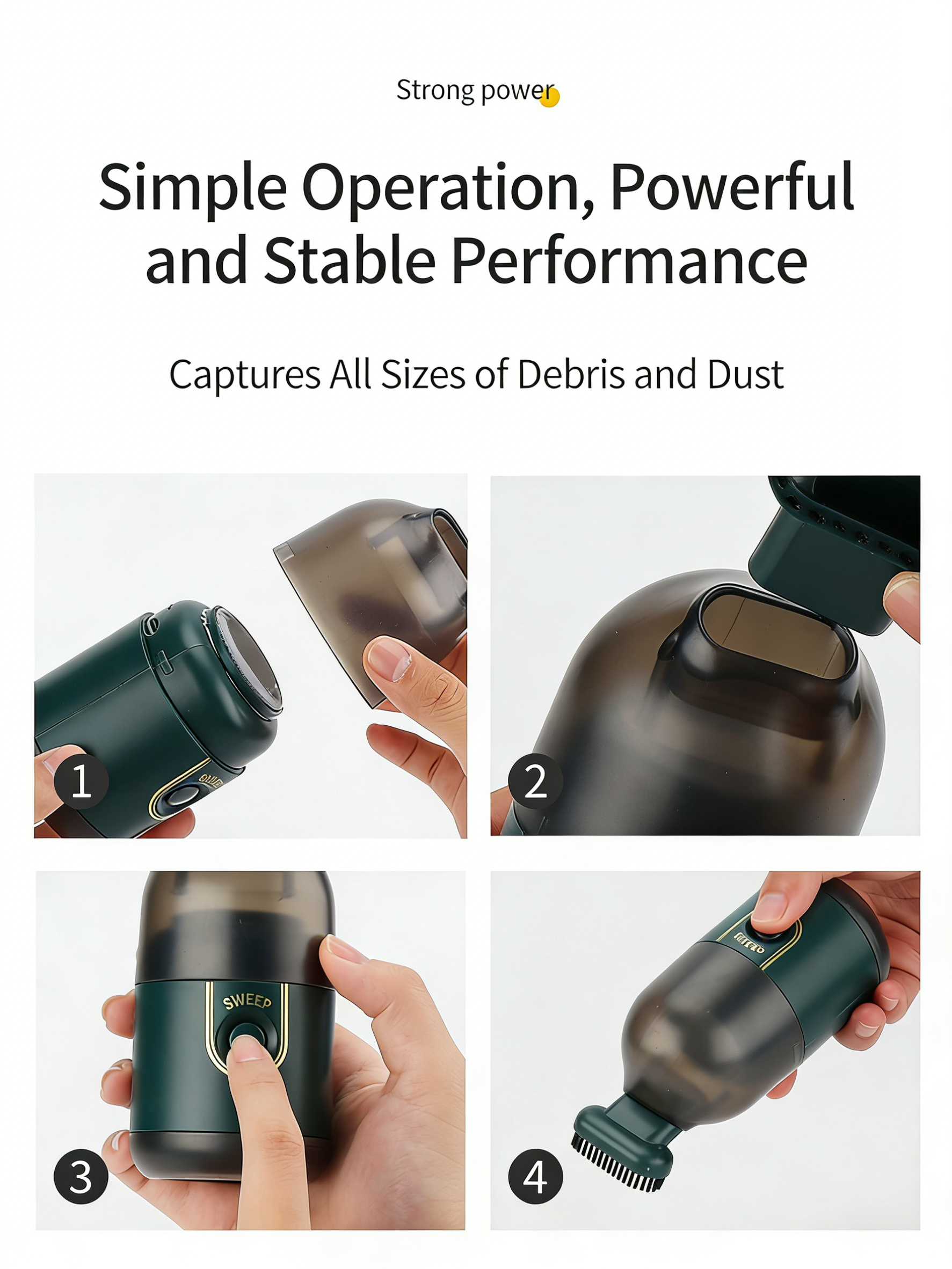- Powerful suction for efficient dust removal