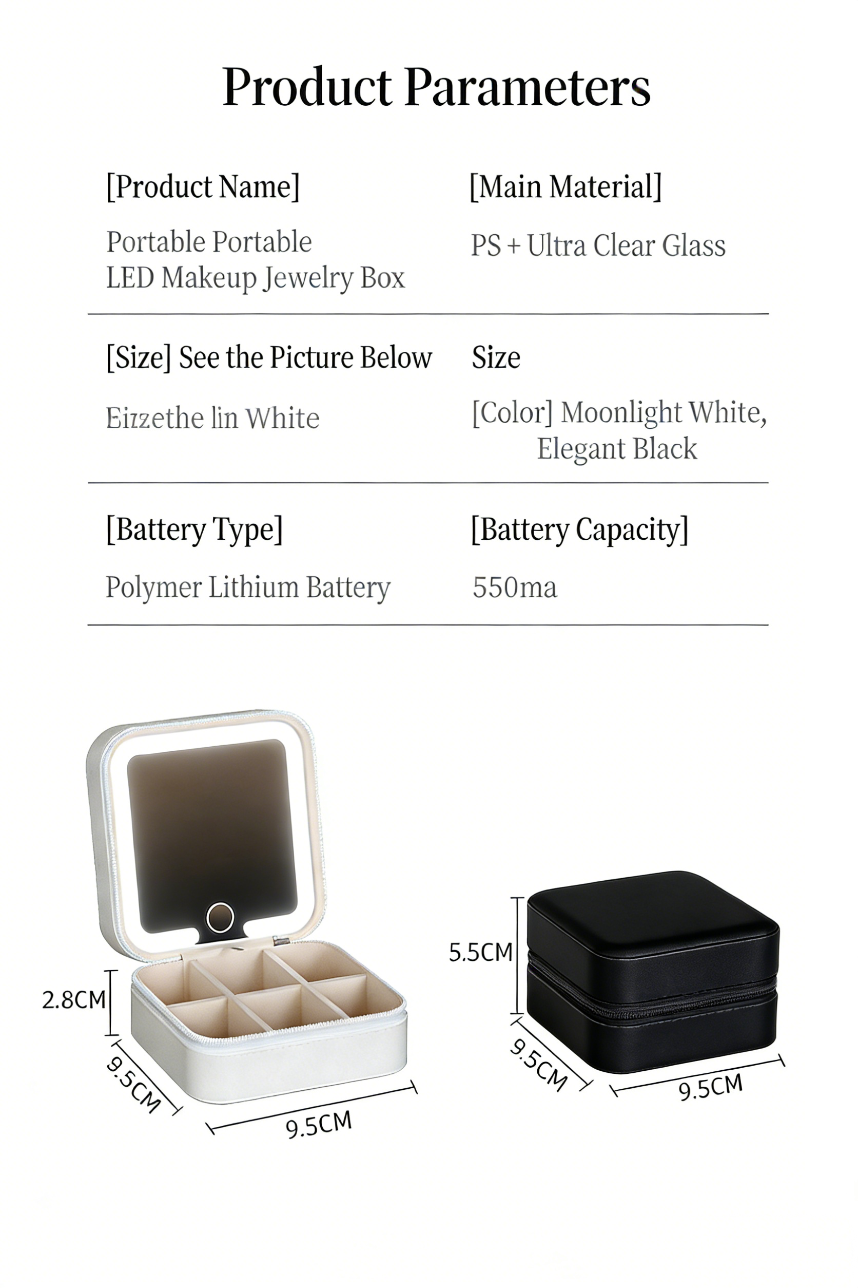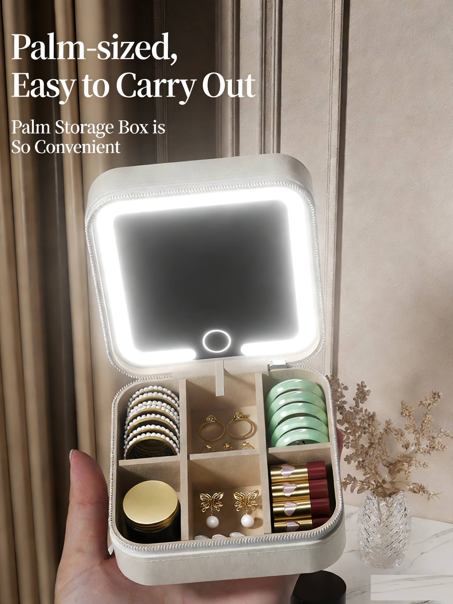 **Square Jewelry Box with Mirror | Portable Folding LED Makeup Mirror**