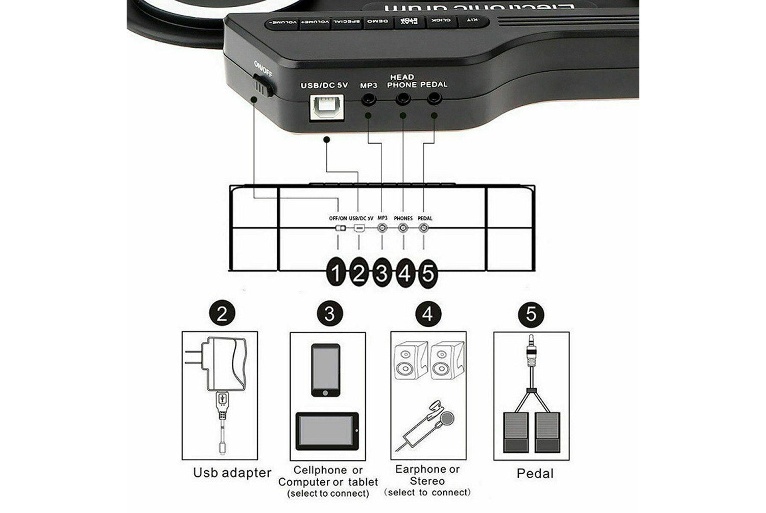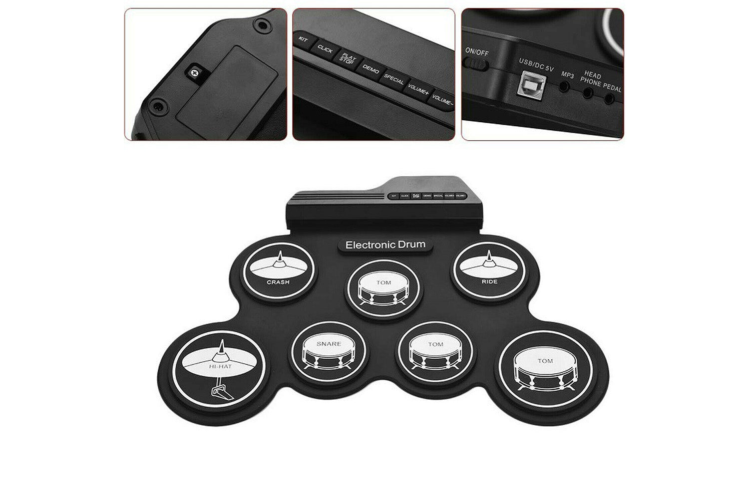 With 7 silicon drum pads including Tom/Snare/Hi-Hat/Crash/Ride, making excellent sounds and simulating real beating effect.