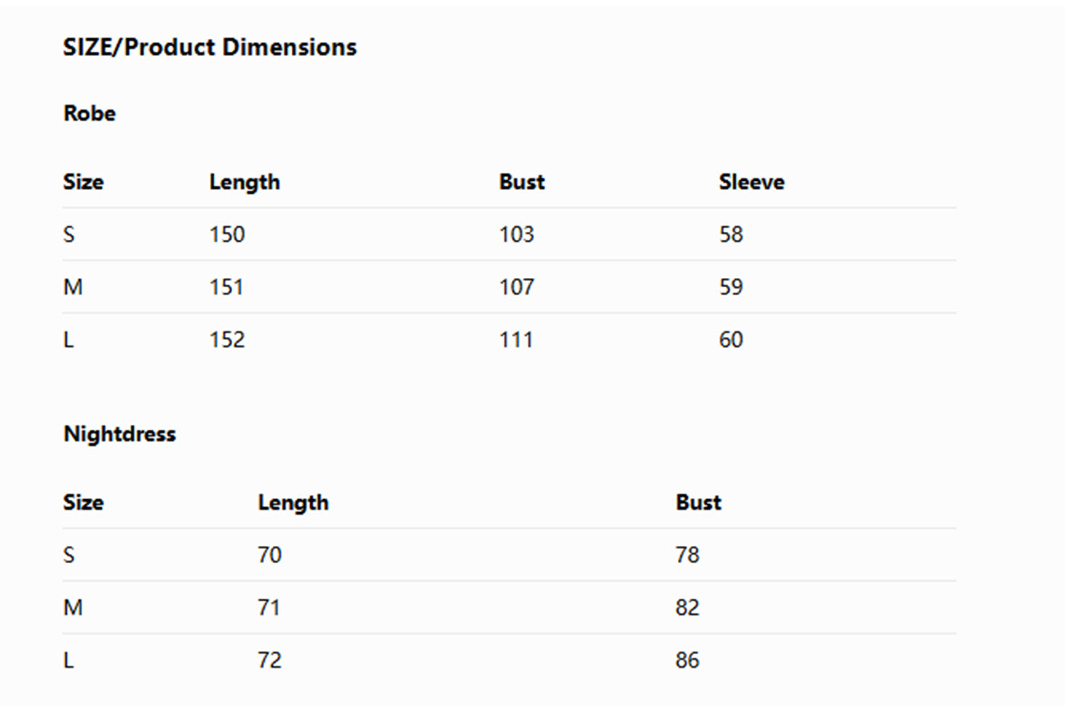 S, M, L