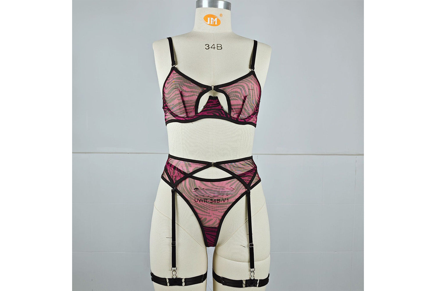 **Sexy Thin Patterned Bra Set - Mesh Printed Underwire Bra**