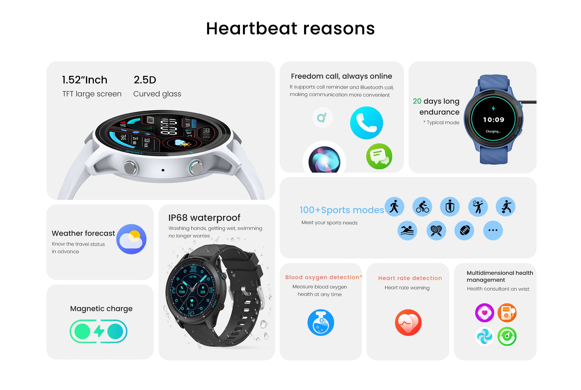 **Smart watch 1.52-inch large screen | Long battery life Bluetooth call | Health detection sports touch screen **