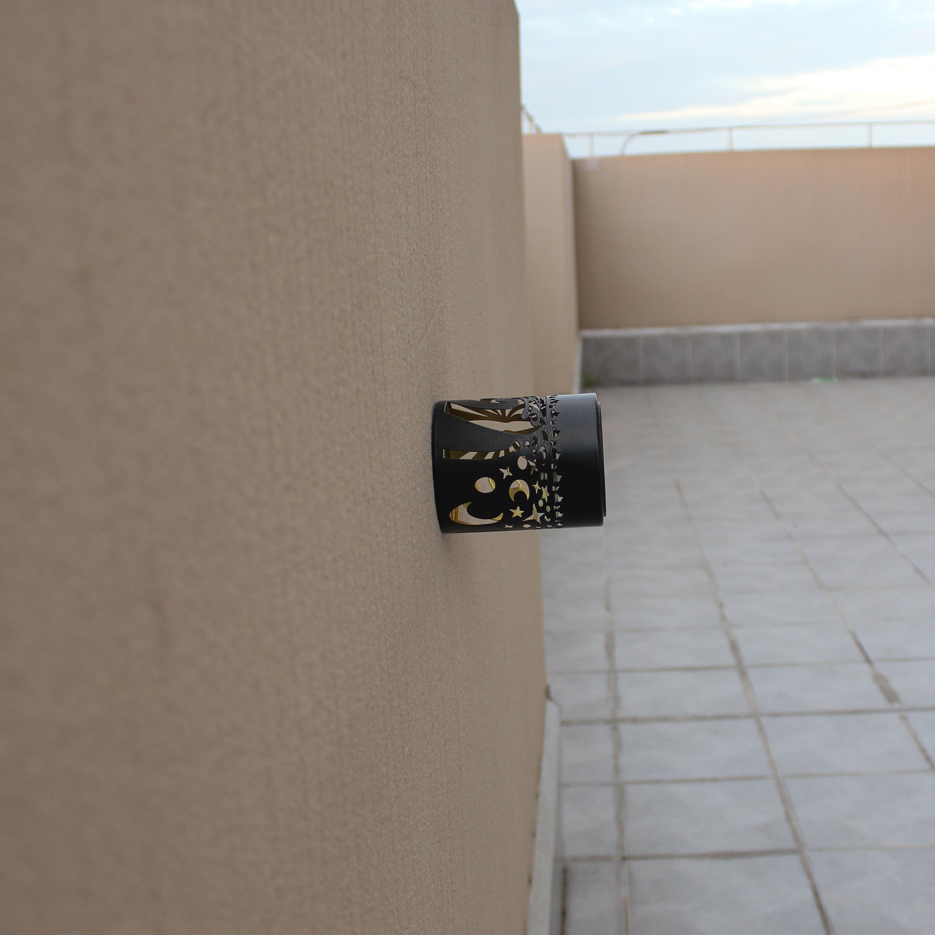 **Solar-Powered Wall-Mounted Perforated Projector Light for Outdoor Courtyards and Ambient Lights**