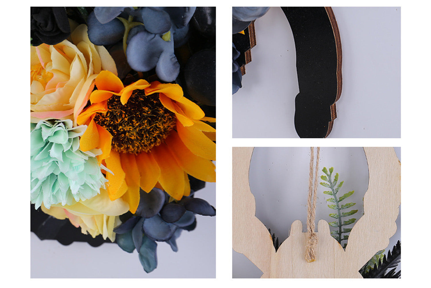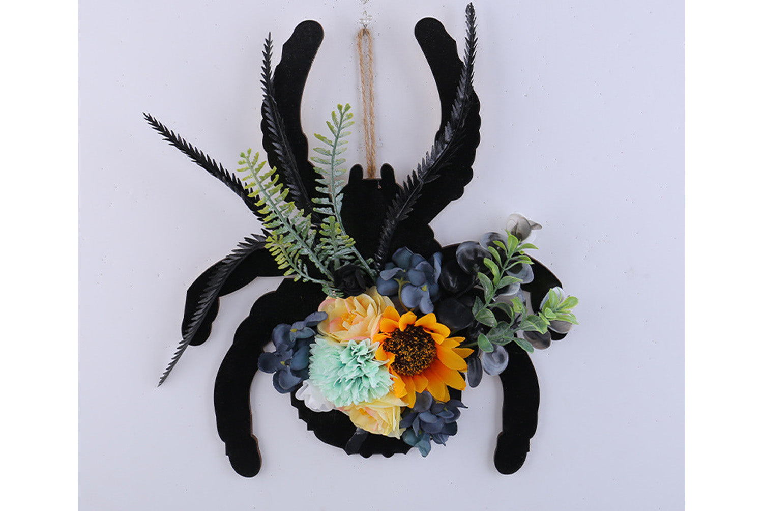 **Spider Wooden Sign Door Hanger | Halloween Vine Wreath Decoration | Plastic and Polyester Material**