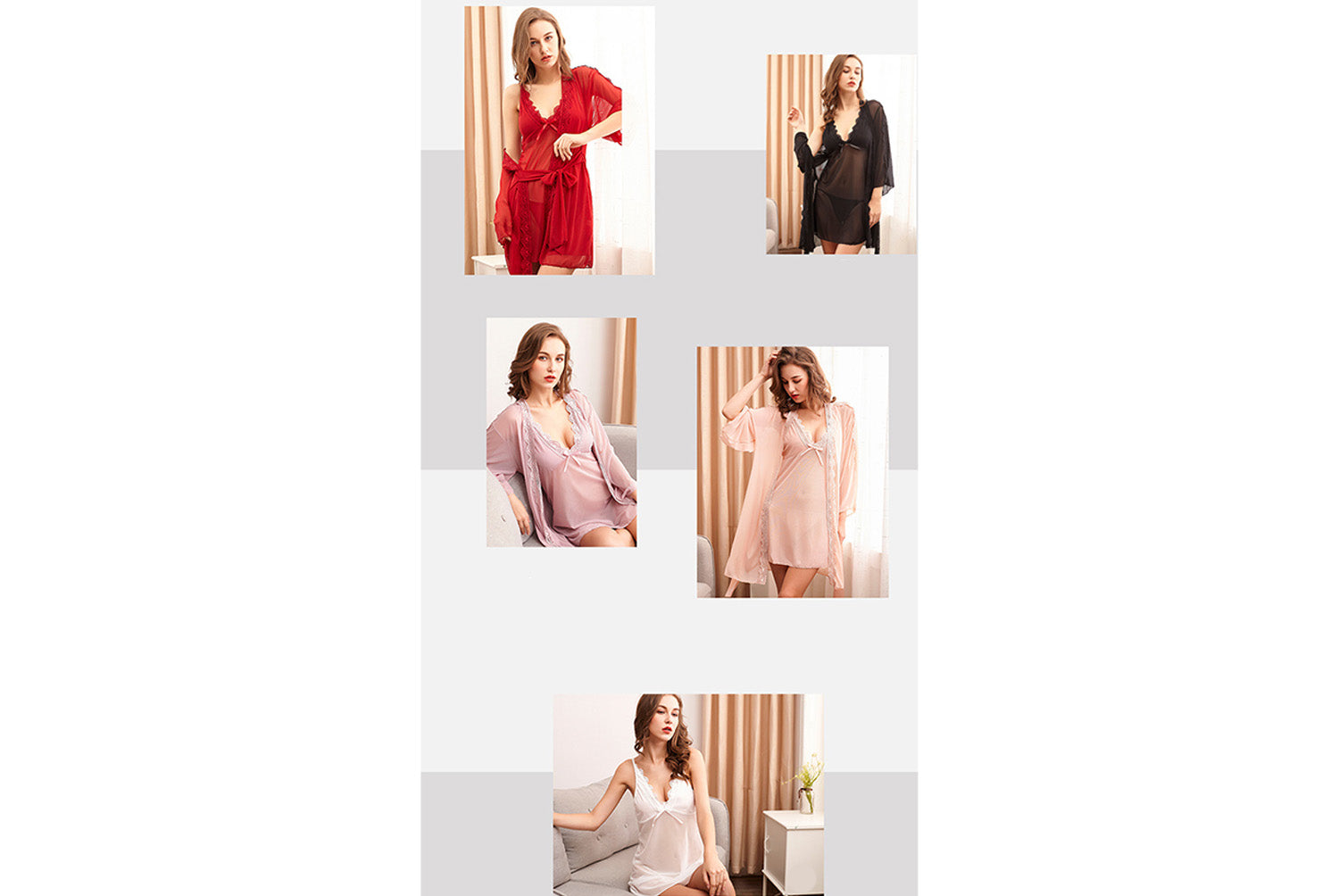 **Three-Piece Sexy Lingerie Set with Padded Bra, Backless Suspender, and Nightgown**
