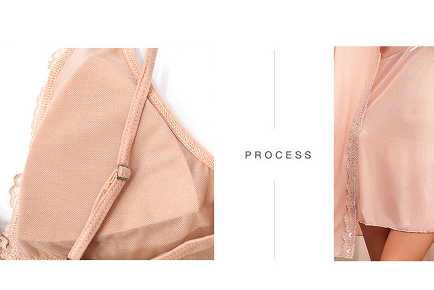 - Three-piece set: padded bra, backless suspenders, and nightgown