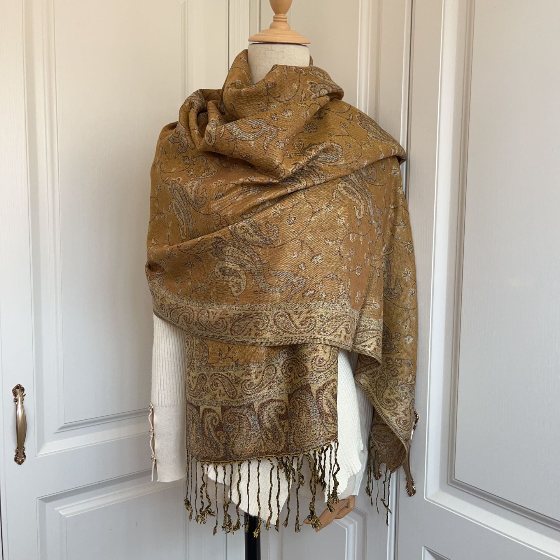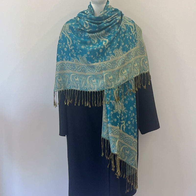 This product is a bohemian retro-style tasseled cashew embroidered ethnic style large shawl with a size of 70*180cm. It can be used as a shawl or scarf and is suitable for travel and daily wear.