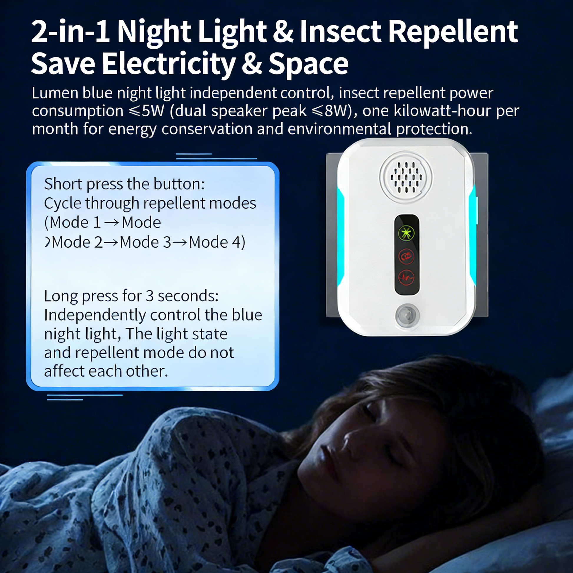 4. Power ≤ 5W, effective range: 80-120 square meters, operating voltage: AC90-110V/60HZ.