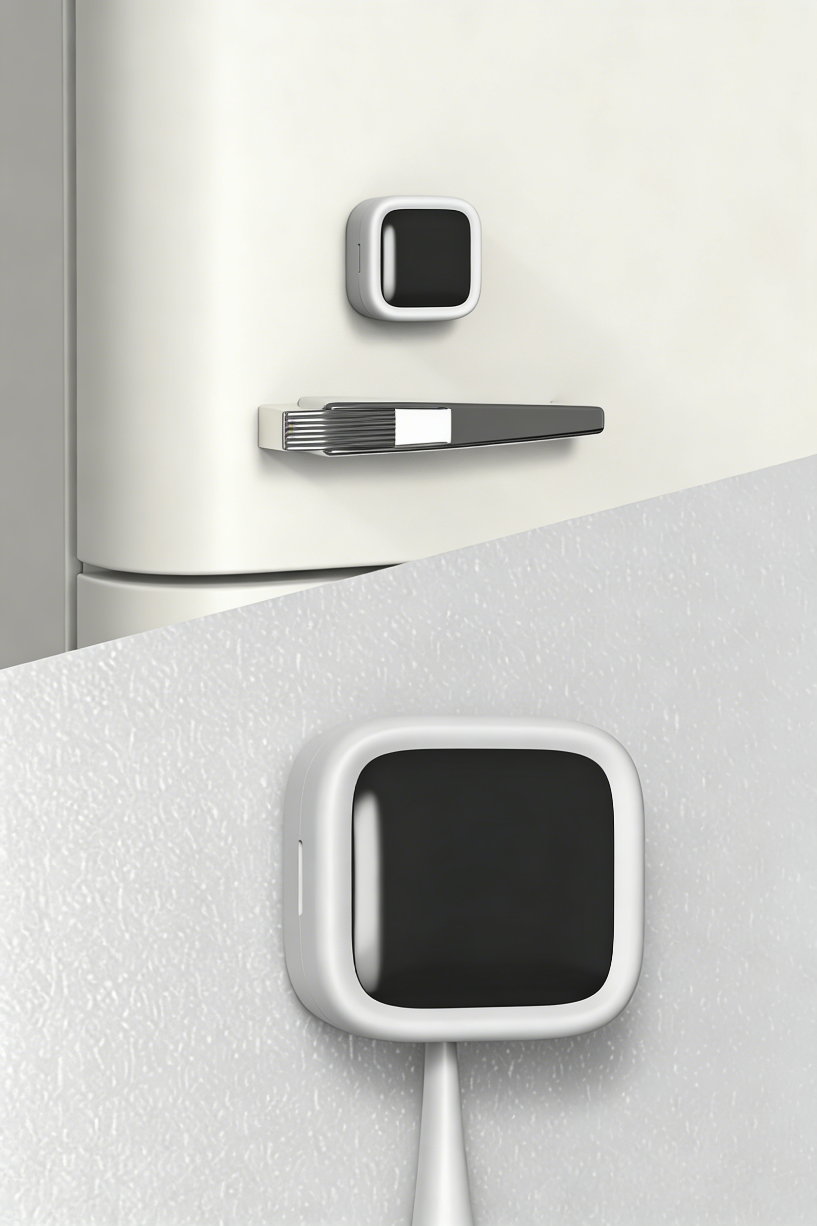 2. Attach the magnetic strips to secure the toothbrush. Close the lid for automatic sterilization.