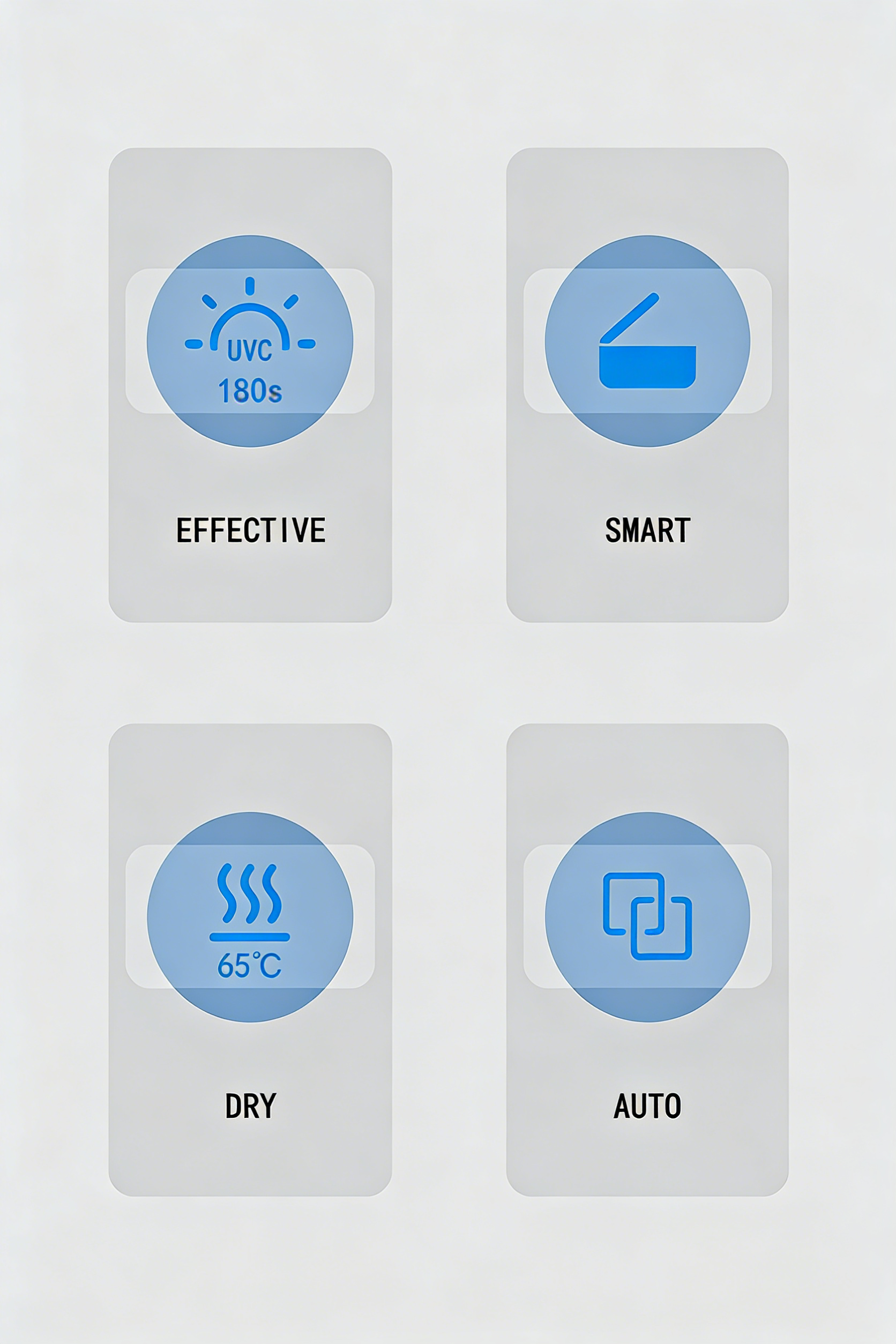 1. After charging, turn on the sterilization mode. Each cycle is approximately 5-10 minutes.