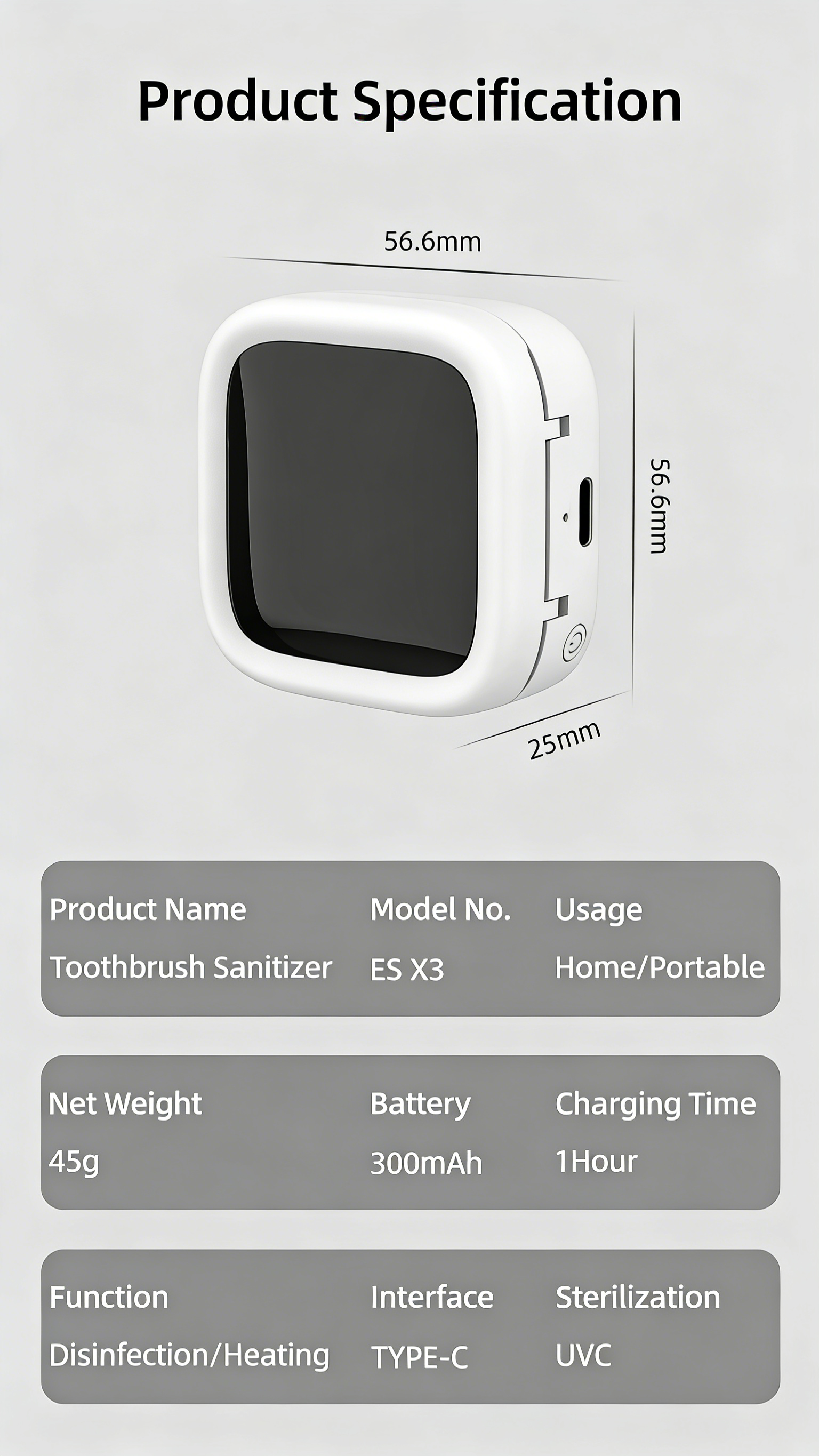- Compact structure, compatible with most toothbrush models, preventing brush head contamination.